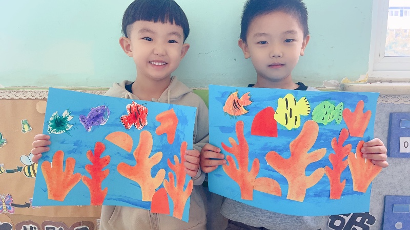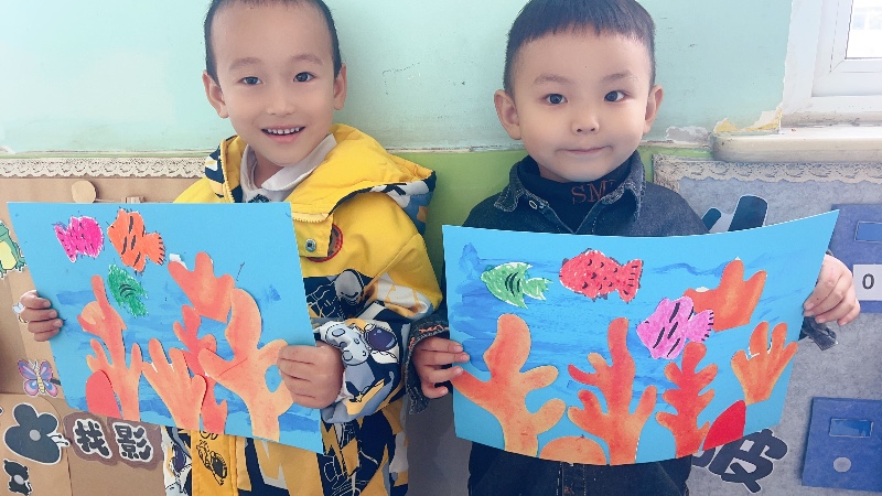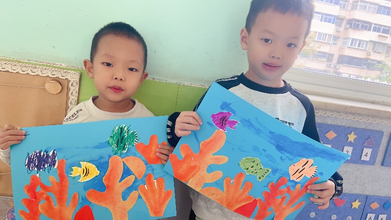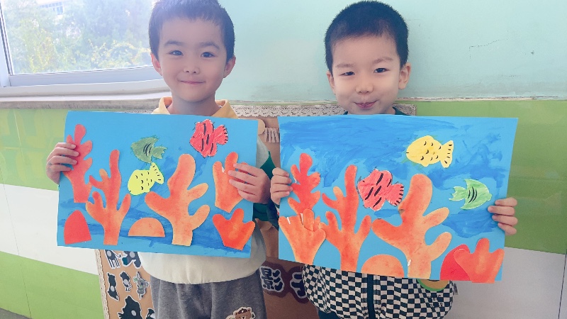 今天带孩子们了解了海里的生物:珊瑚🪸,孩子们很认真地听讲,然后自己动手制作海里珊瑚画作,快来欣赏吧!