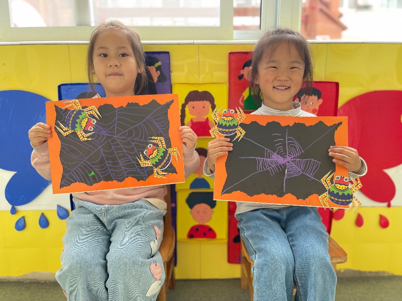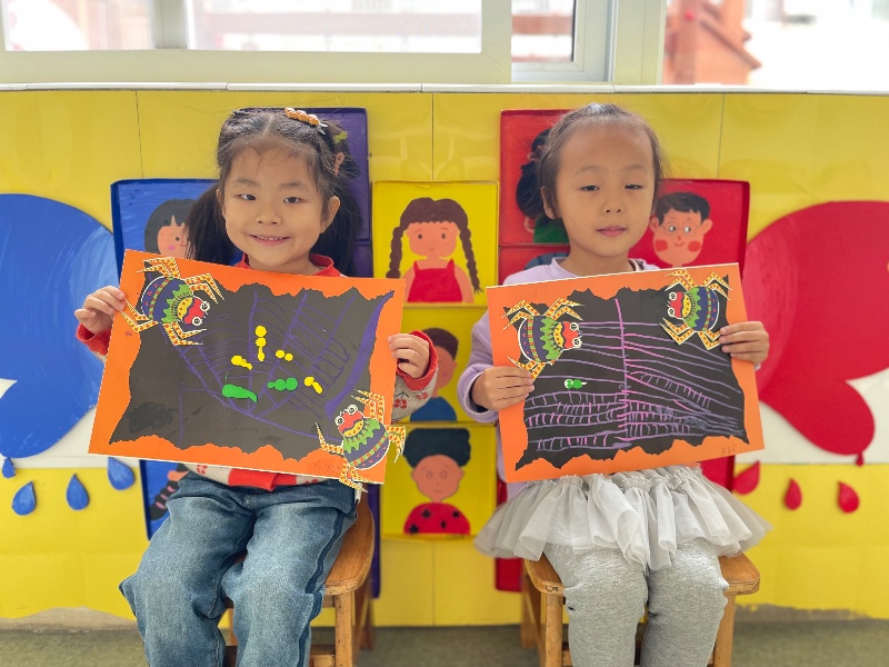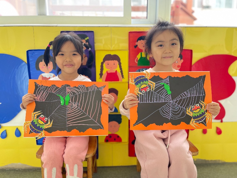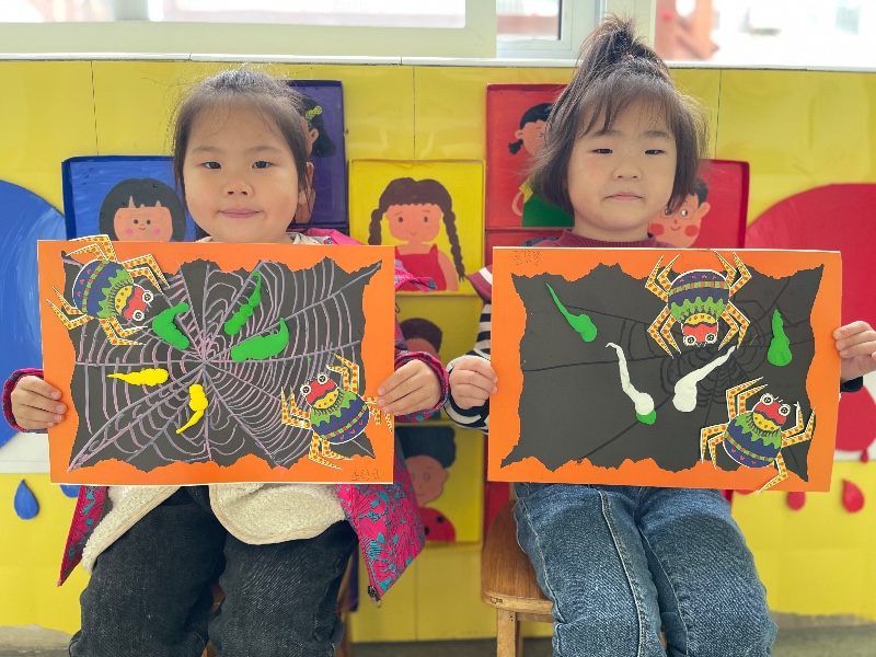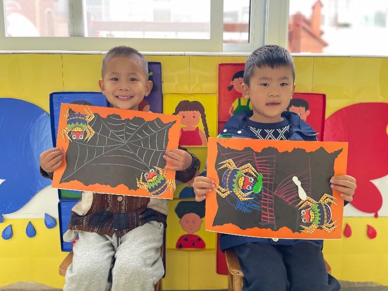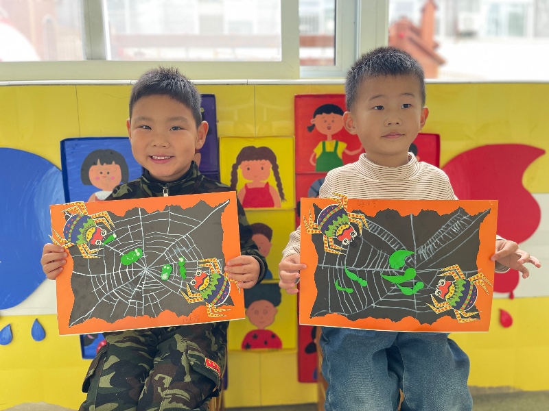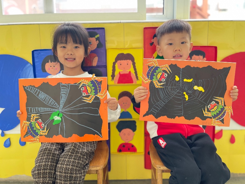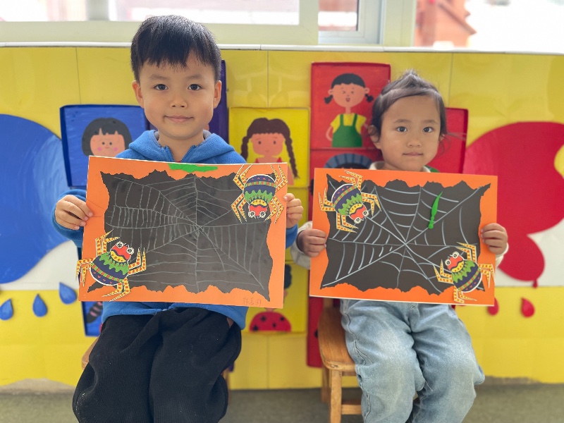 今天我们开展了创意美术活动《天罗地网》,通过水彩笔、轻泥、等绘画工具创作了作品。运用放射线的方式绘制了蜘蛛网🕸️,表达了画面线条和放射线的组合绘画;运用纸粘土,制作了多只小昆虫🐛,小蜘蛛🕷️织网是为了捕食,希望小朋友们可以体会到蜘蛛捕食的聪明与机智,以及耐心等待猎物的专注力。
