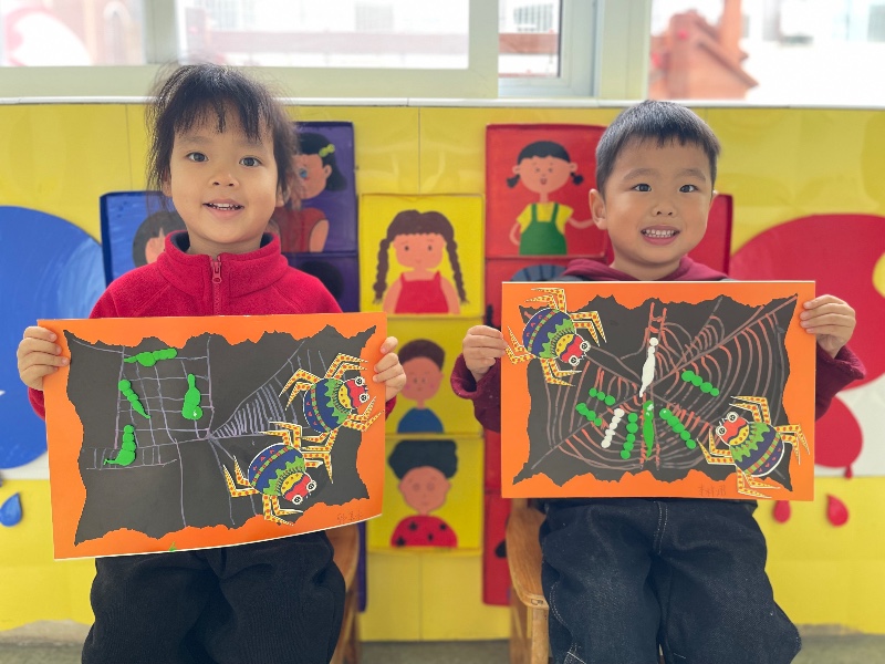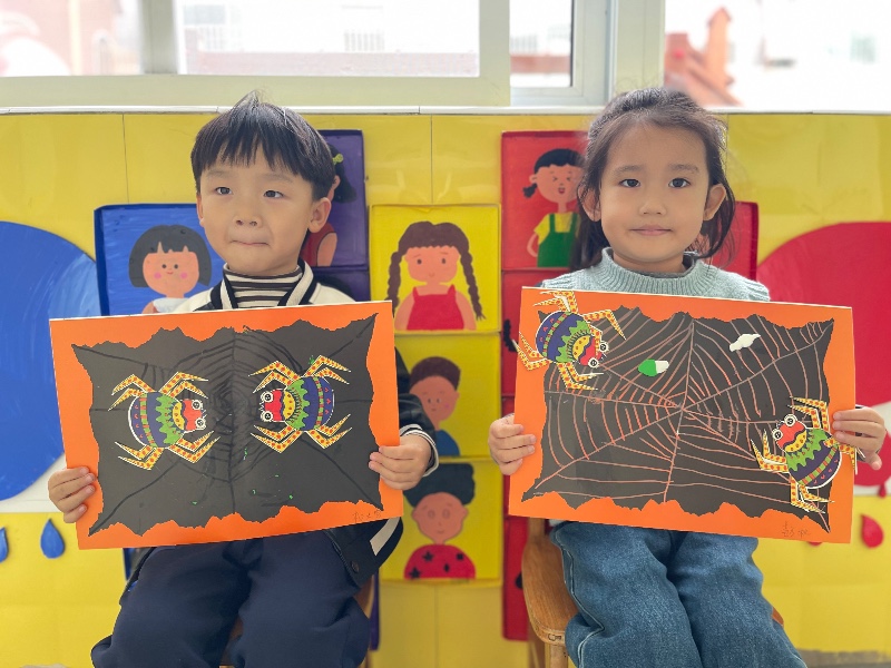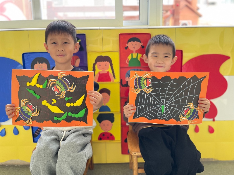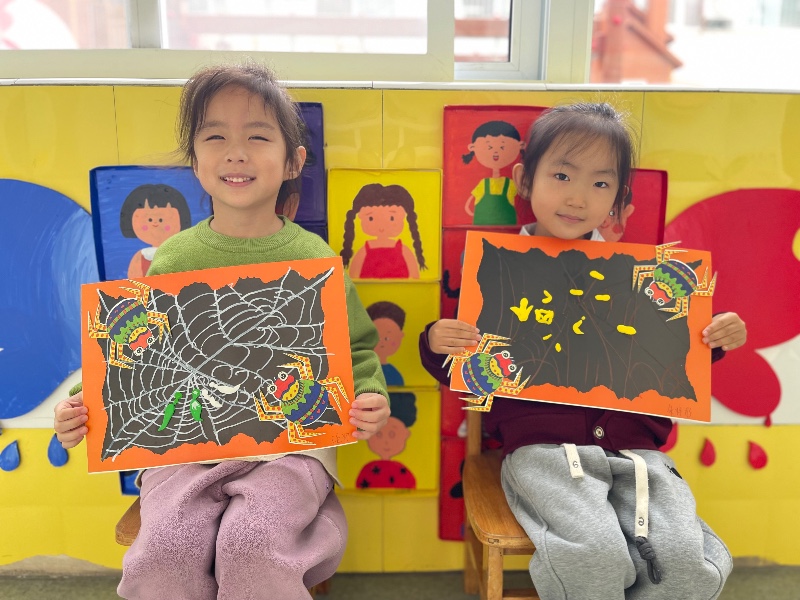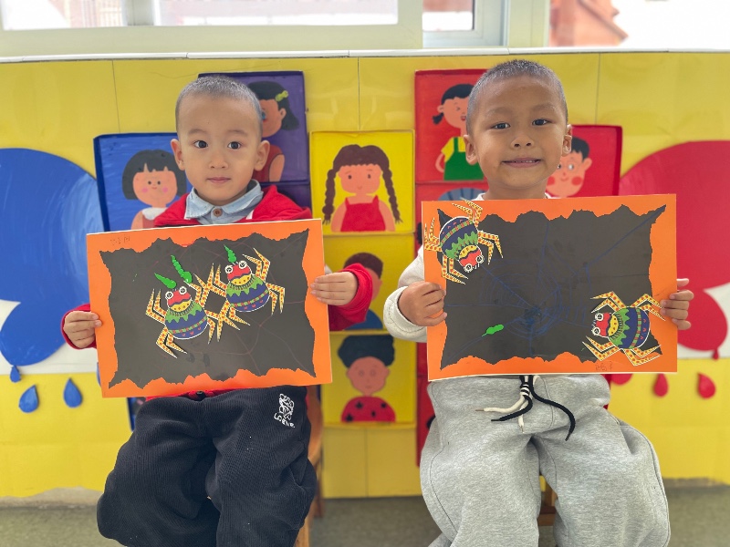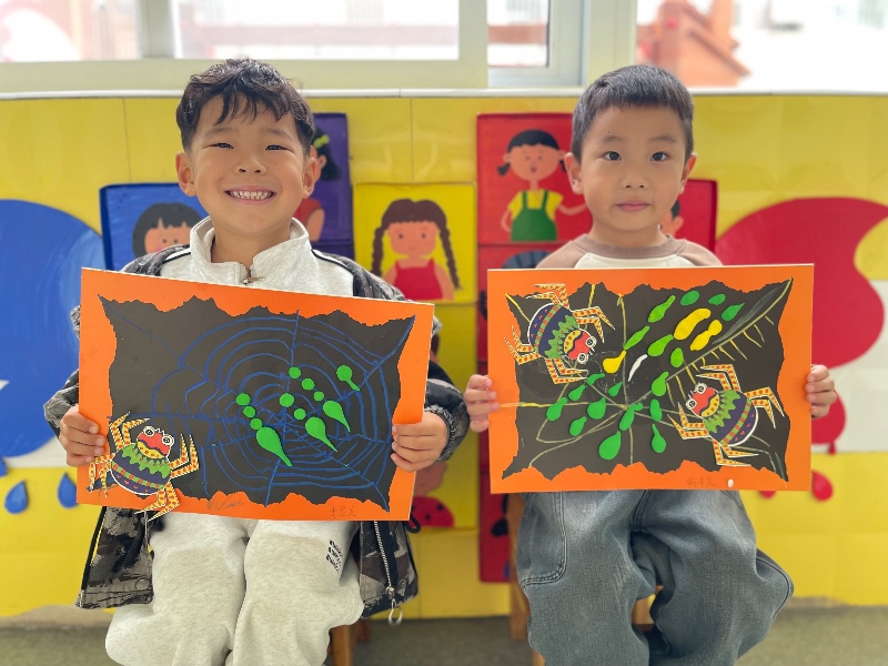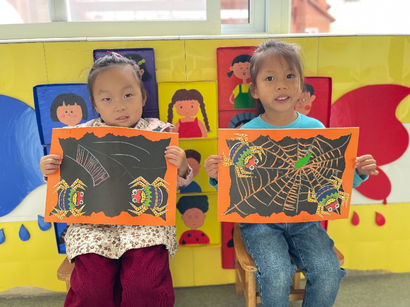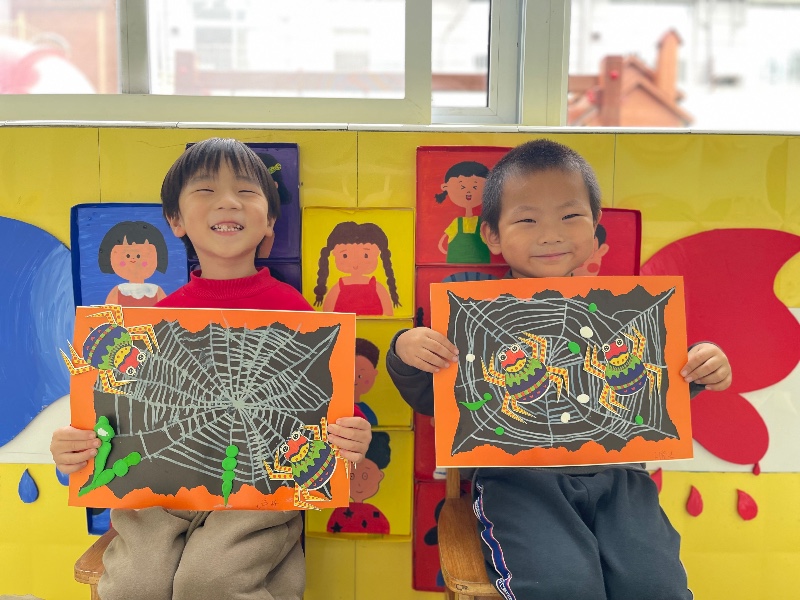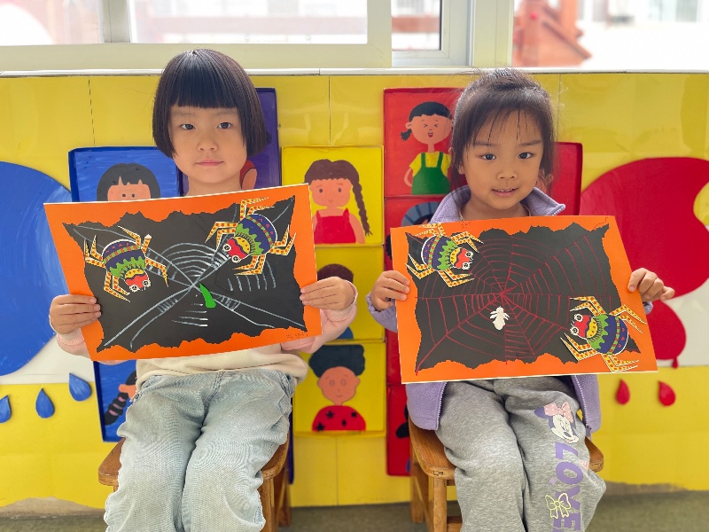 今天我们开展了创意美术活动《天罗地网》,通过水彩笔、轻泥、等绘画工具创作了作品。运用放射线的方式绘制了蜘蛛网🕸️,表达了画面线条和放射线的组合绘画;运用纸粘土,制作了多只小昆虫🐛,小蜘蛛🕷️织网是为了捕食,希望小朋友们可以体会到蜘蛛捕食的聪明与机智,以及耐心等待猎物的专注力。