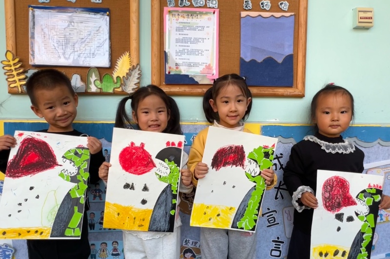小宝贝们画的小恐龙栩栩如生! 快看恐龙🦕要喷火啦🔥 今天宝贝们表现的都非常的棒👍🏻 画面饱满丰富👩🏻🎨棒棒哒哟💗