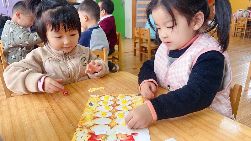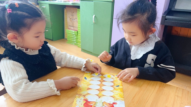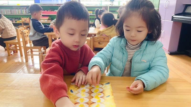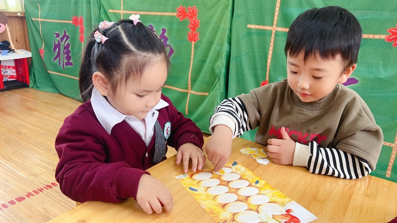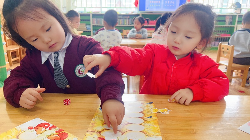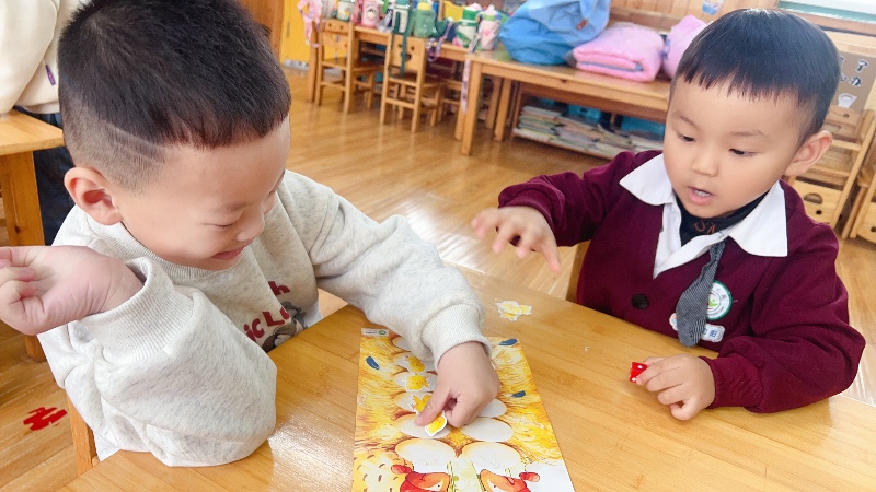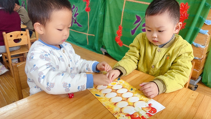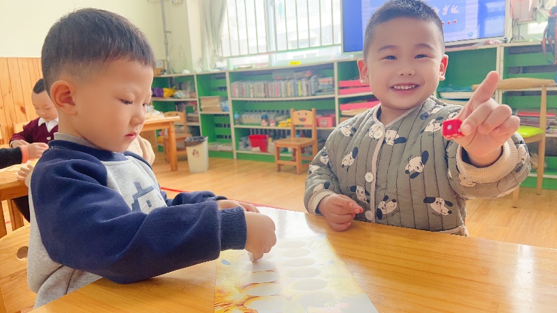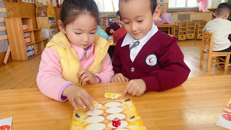 孩子们最喜欢的全景数学游戏来啦!今天我们分组两两游戏,在游戏中让孩子学习从下往上摆放操作。并比较多,少,一样多。