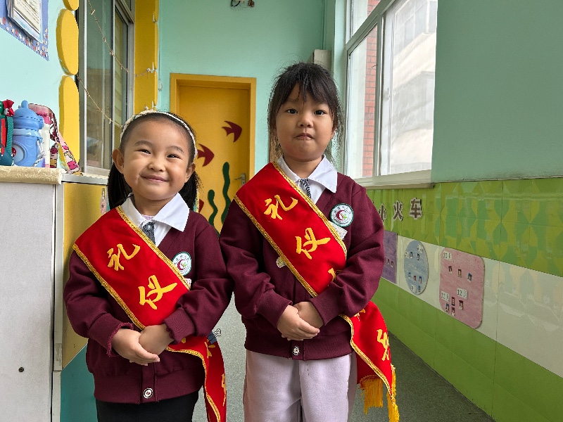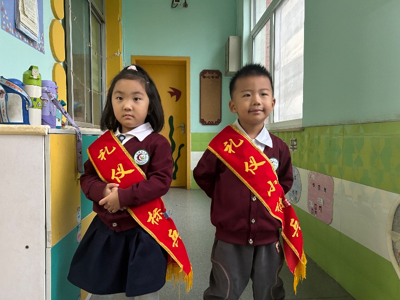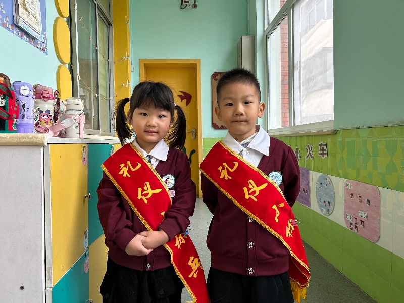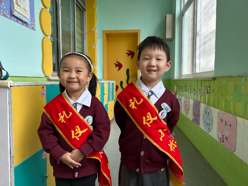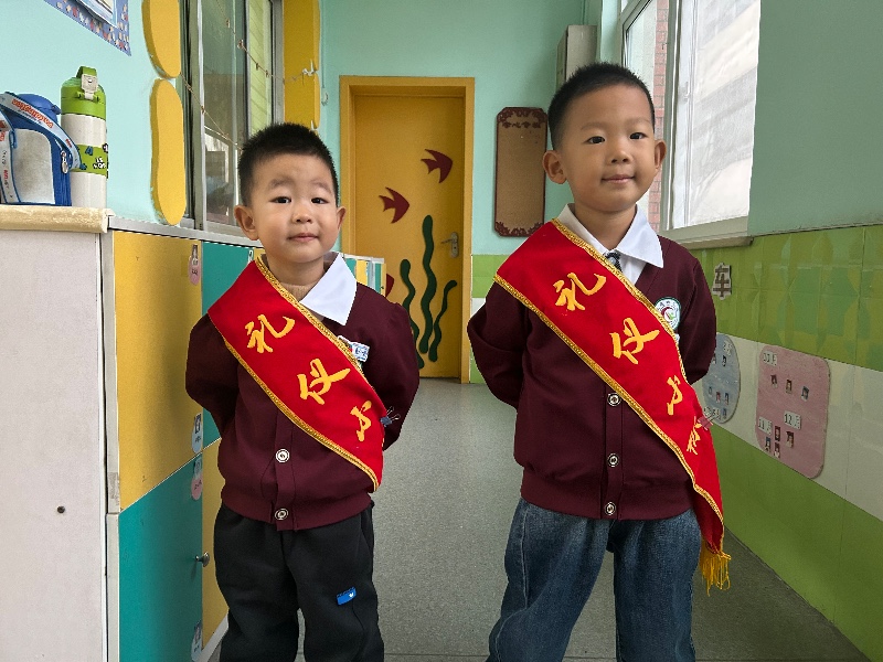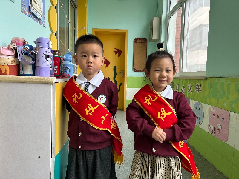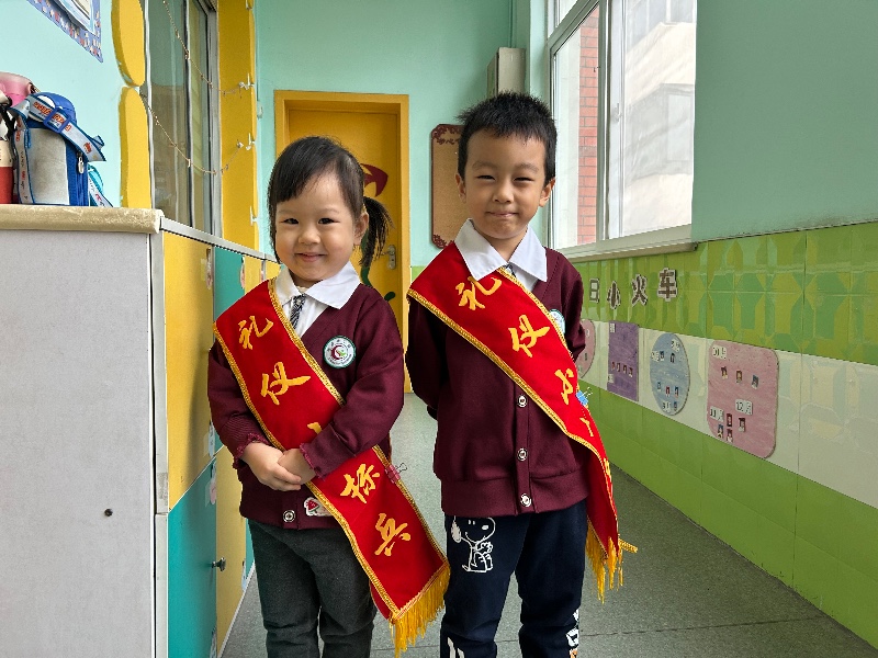 宝贝们第一次当礼仪小标兵,表现棒棒的!