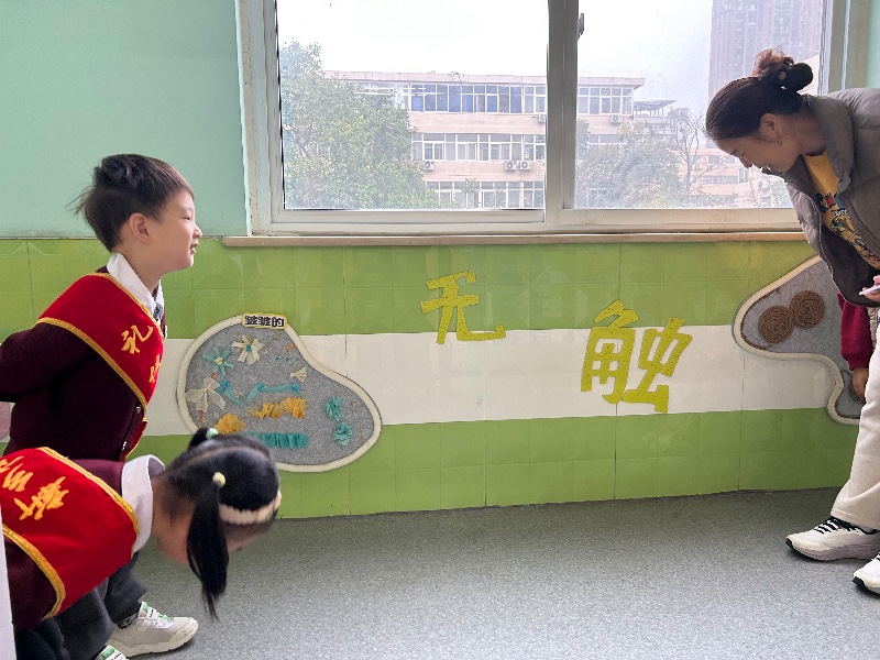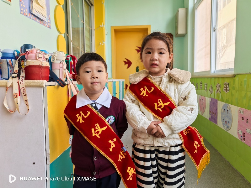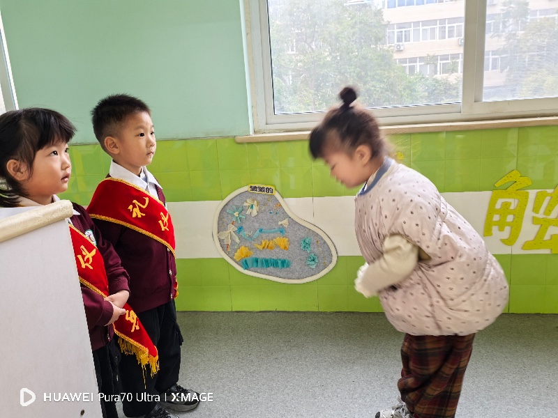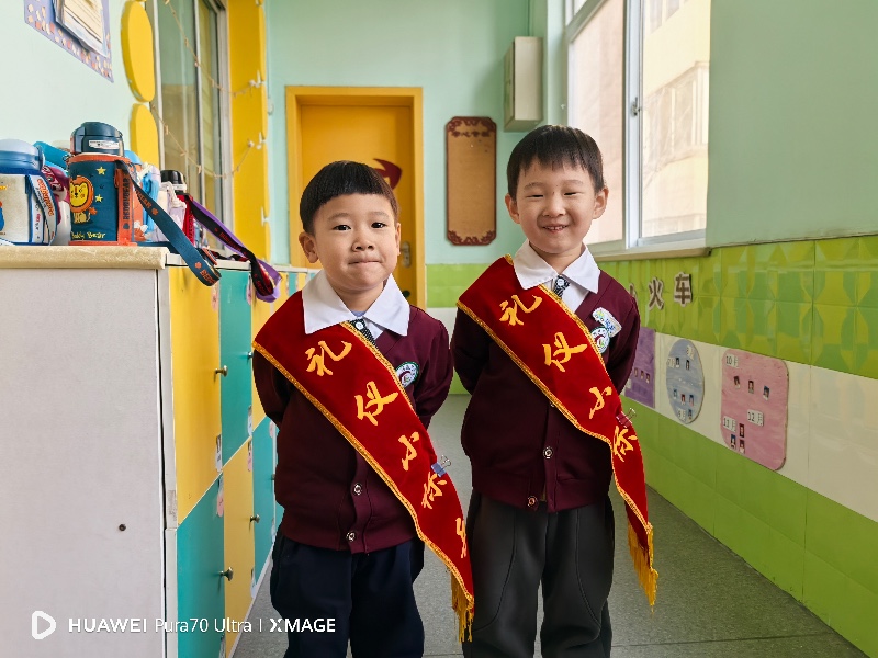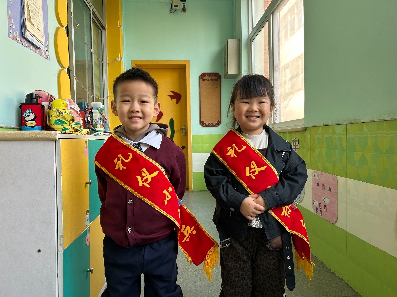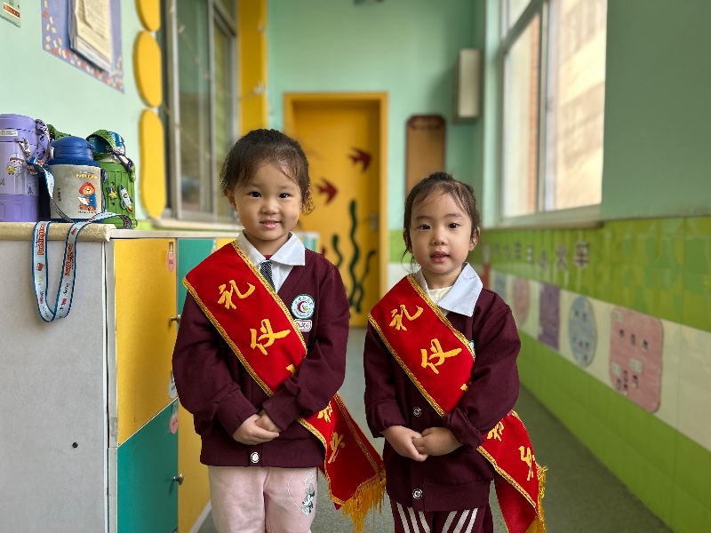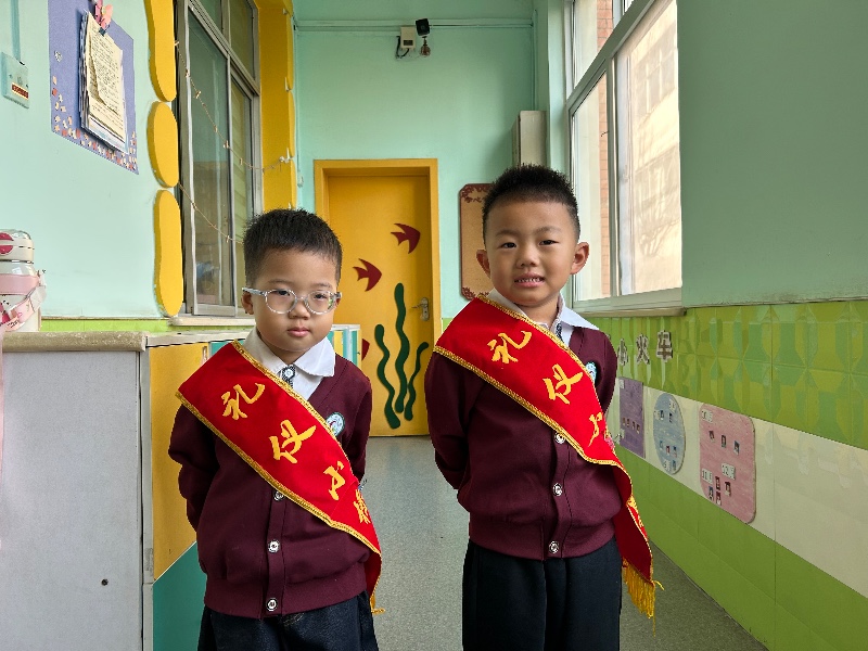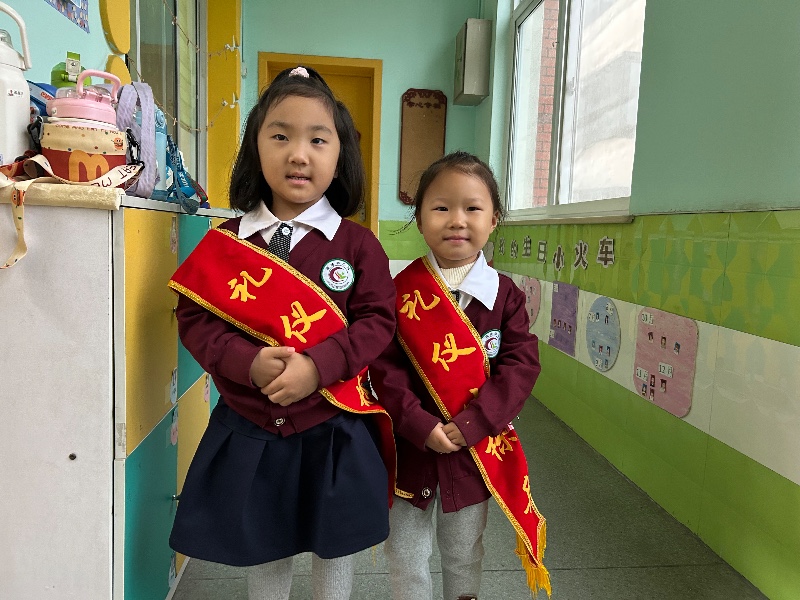 宝贝们第一次当礼仪小标兵,表现棒棒的!