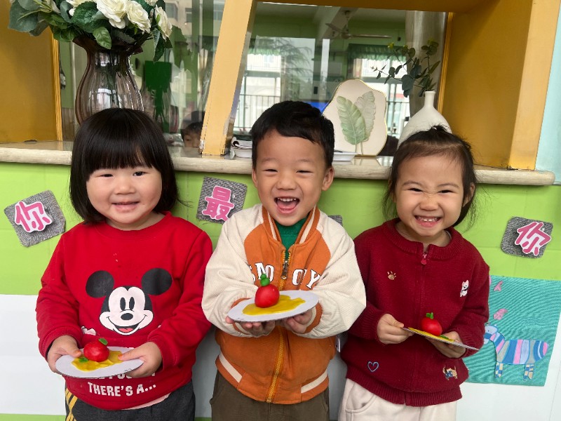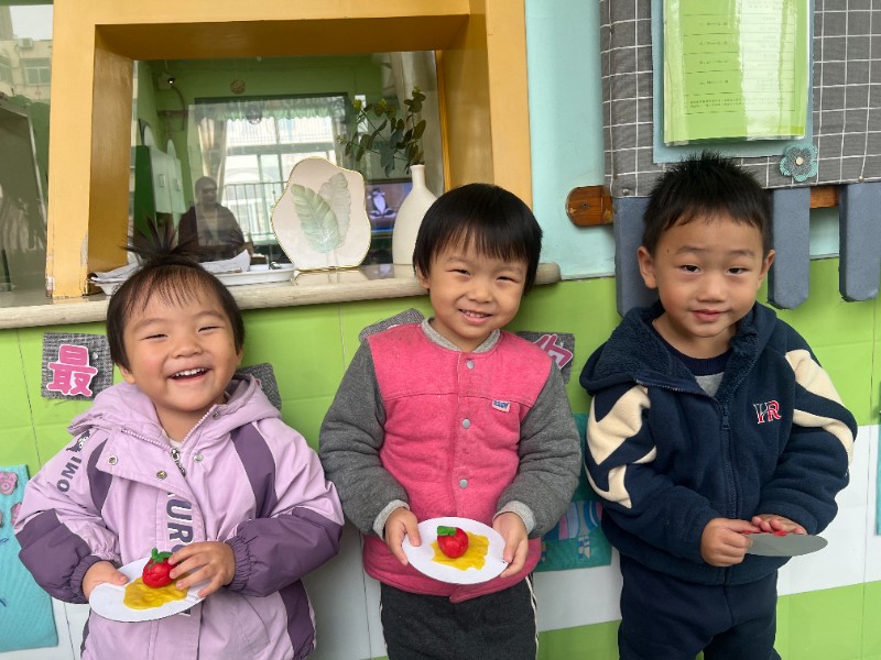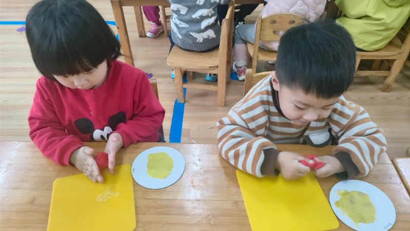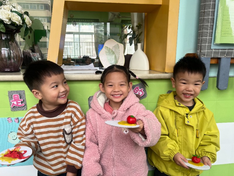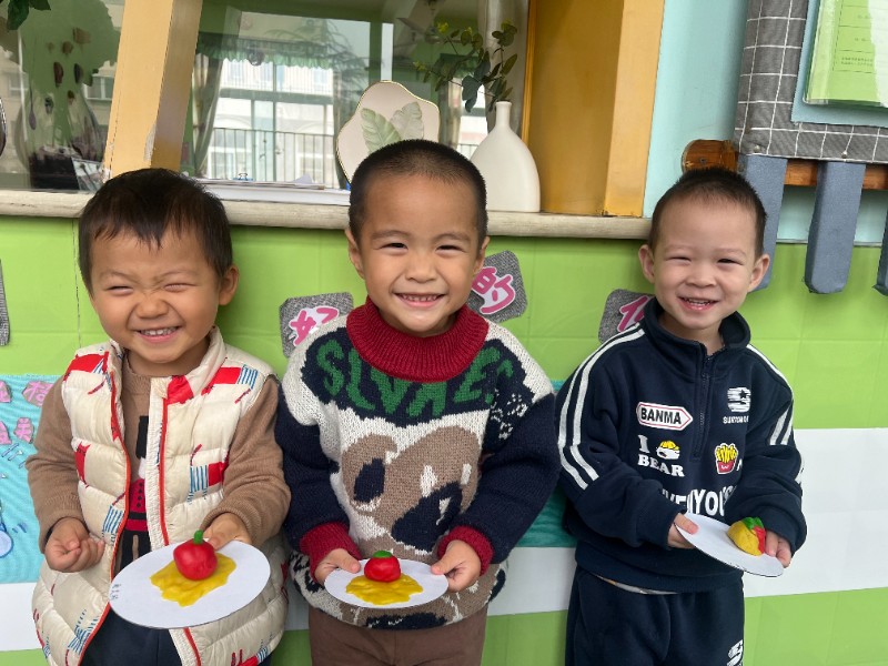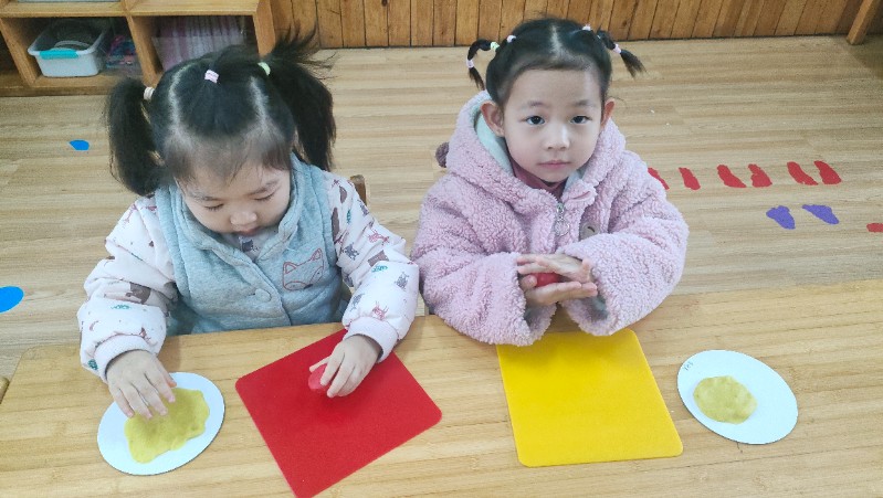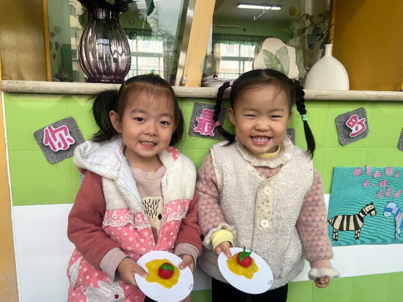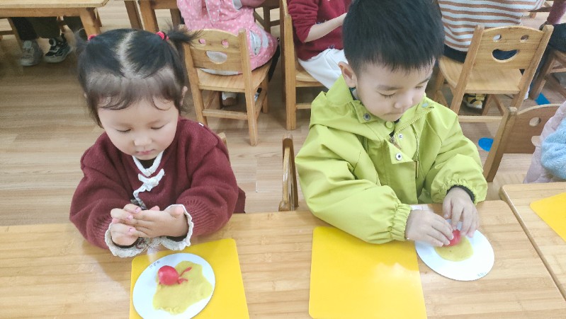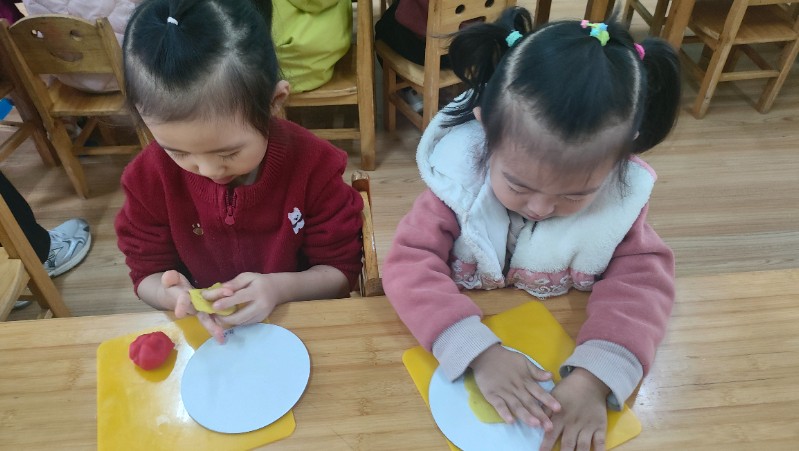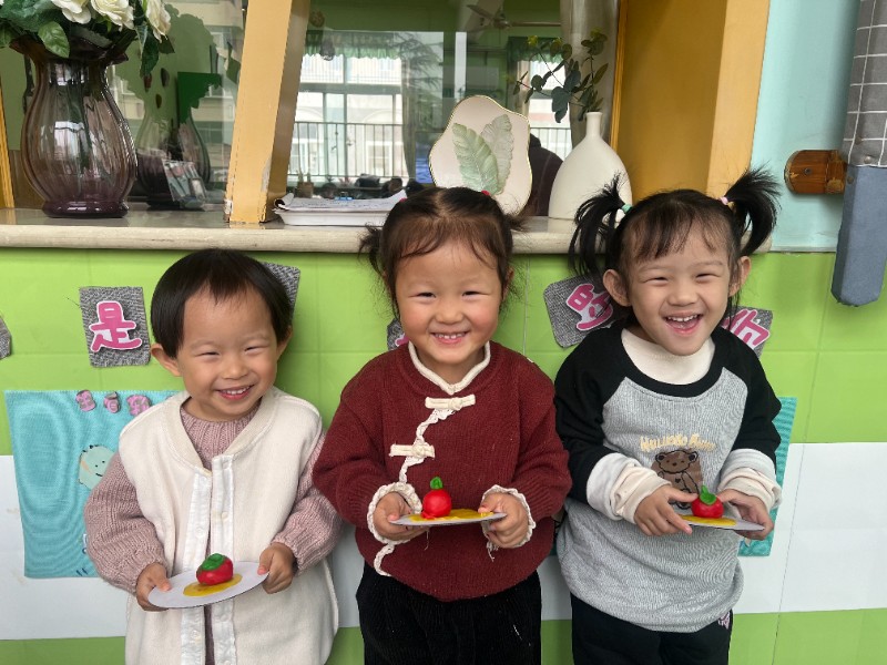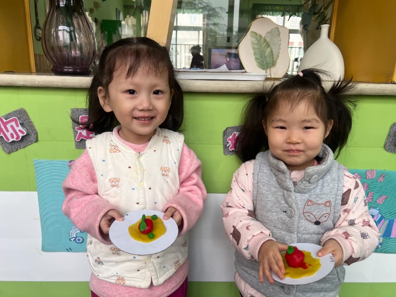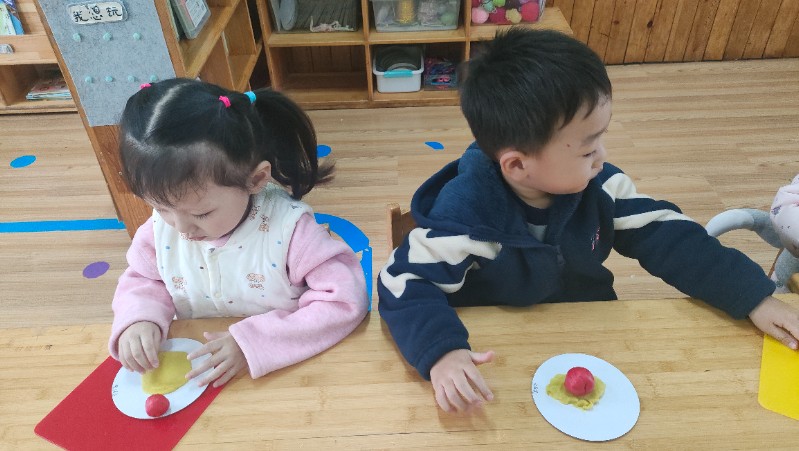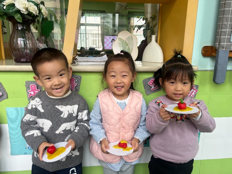 今天我们一起进行了面塑活动——《大苹果》。让幼儿认识圆形,知道水果的种类;复习团、搓的基本技能,用团和搓的塑型技法进行创作,感知几何形状在生活中的用处;教育幼儿知道苹果富含丰富的维生素,多吃苹果有益于身体健康。