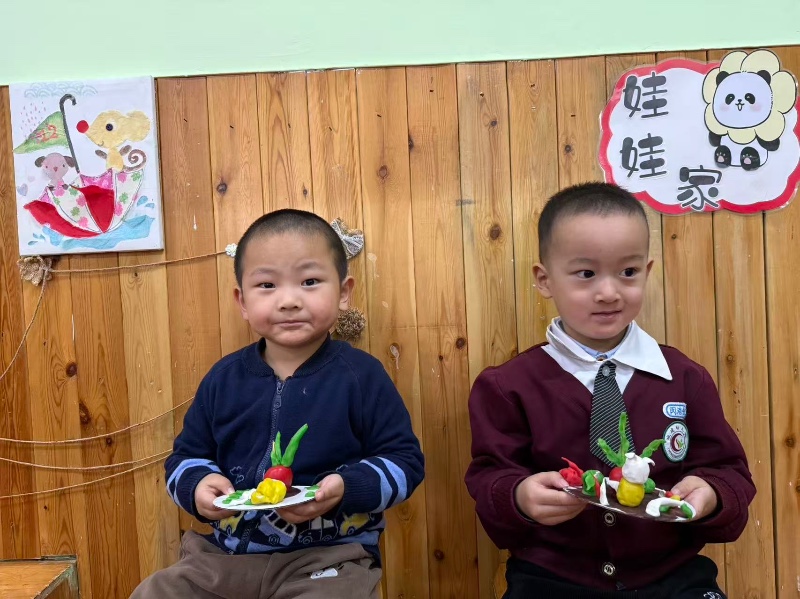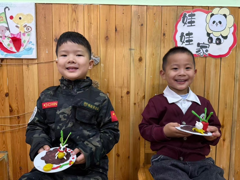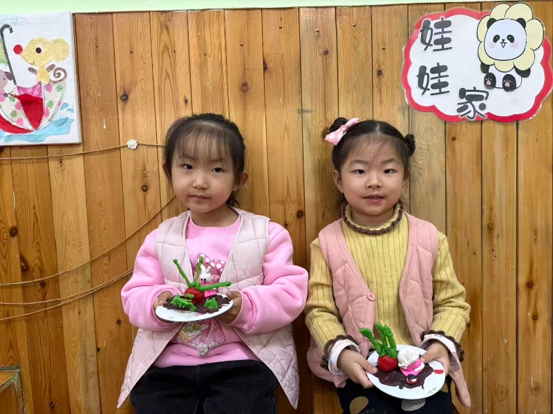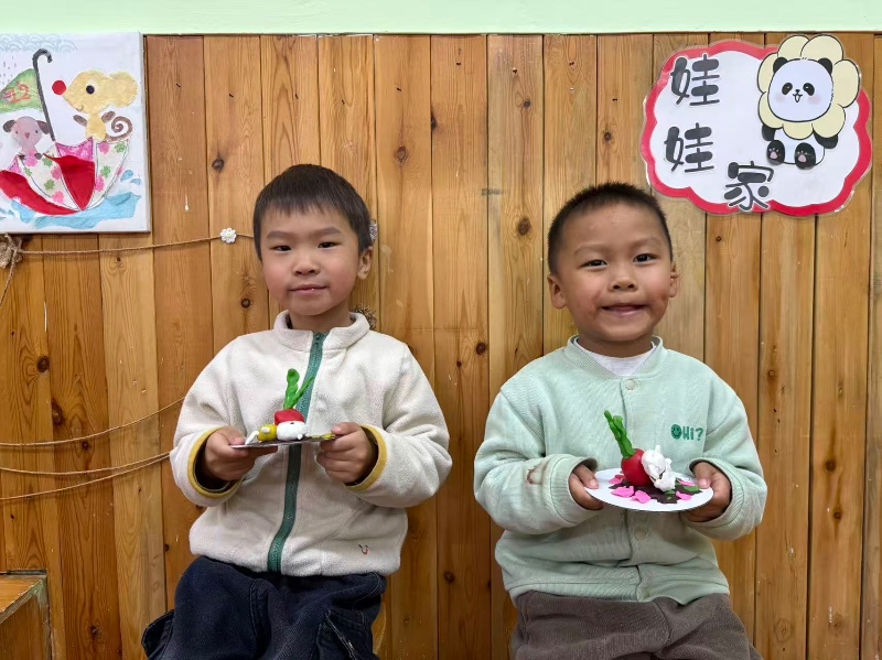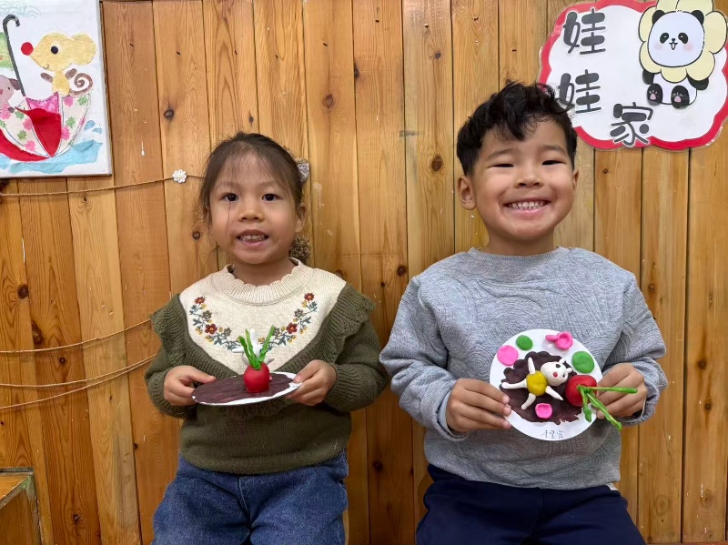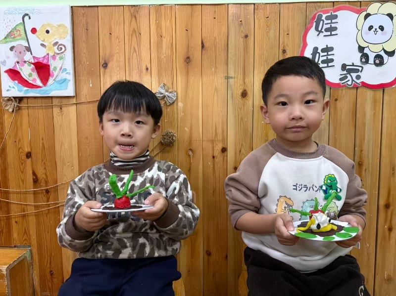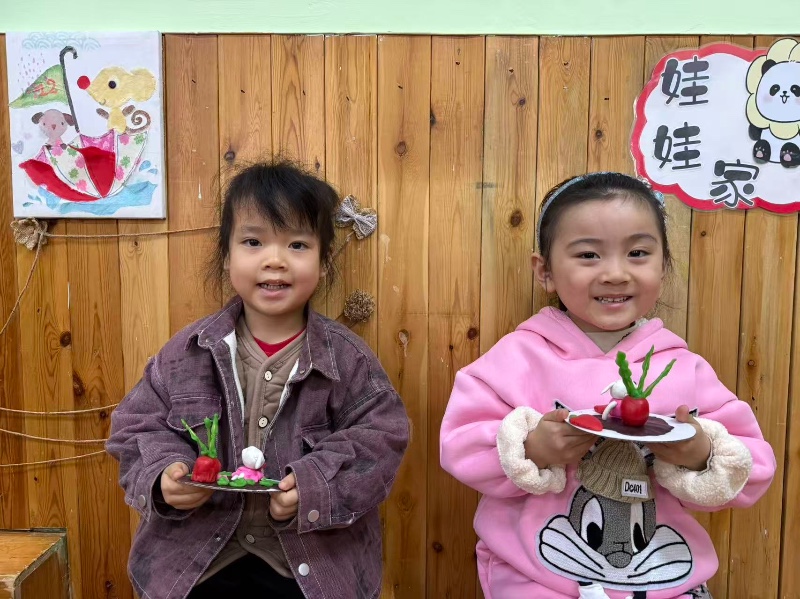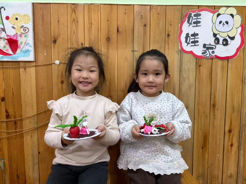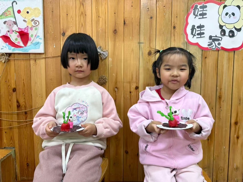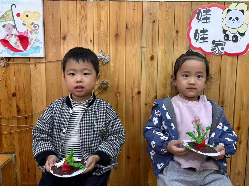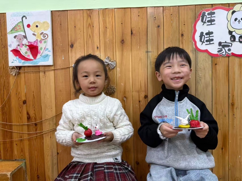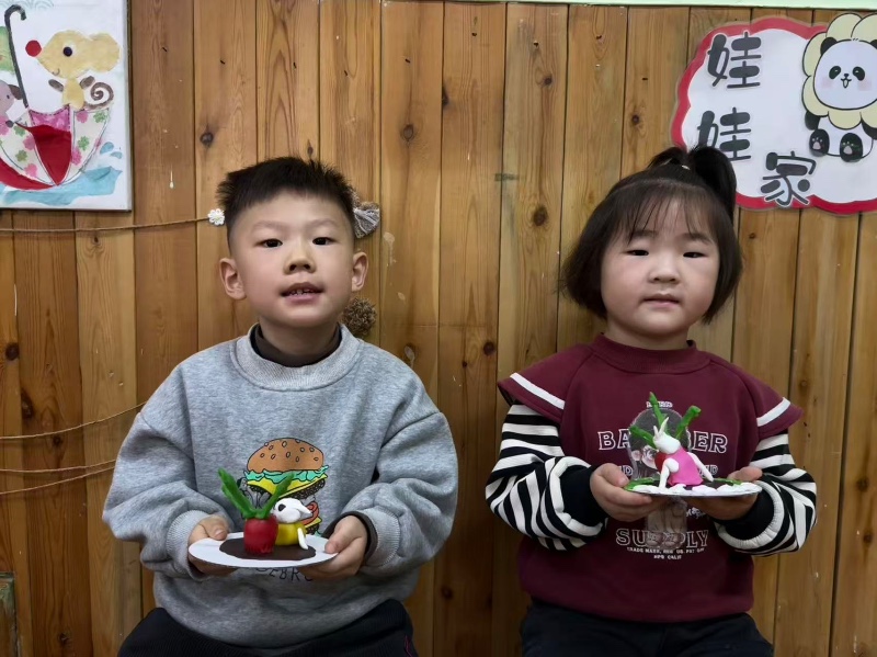 本周面塑主题是《一起拔萝卜》,通过孩子们的精心捏制,一个个活灵活现的小兔子就出炉啦!再搭配红红的大萝卜,简直太可爱☺️!快来夸夸我们吧!