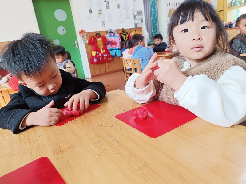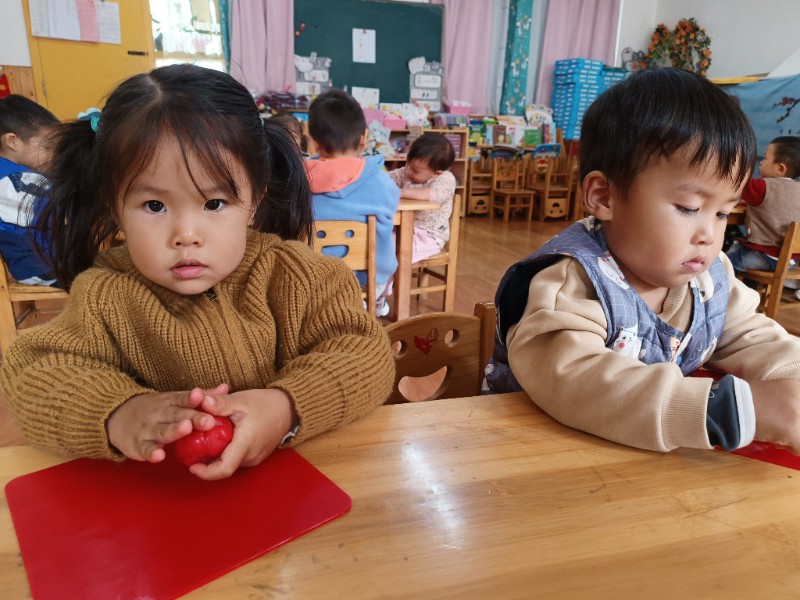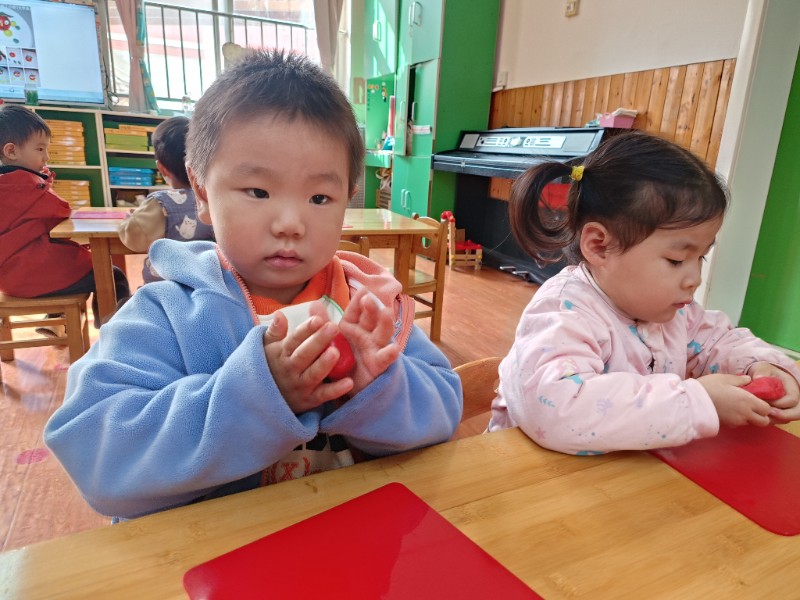 你们喜欢吃红苹果吗?喜欢的一起捏起来吧! 动动小手,开动大脑!让小手和大脑更灵活吧!