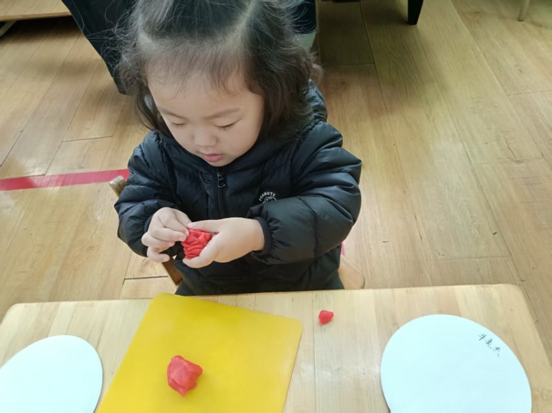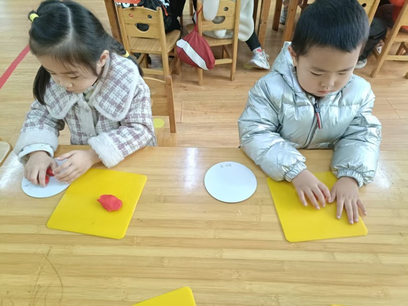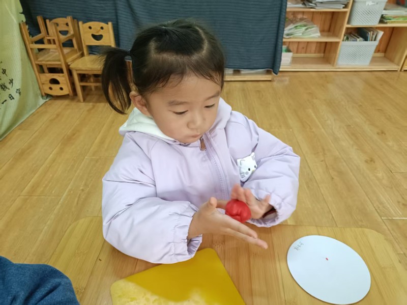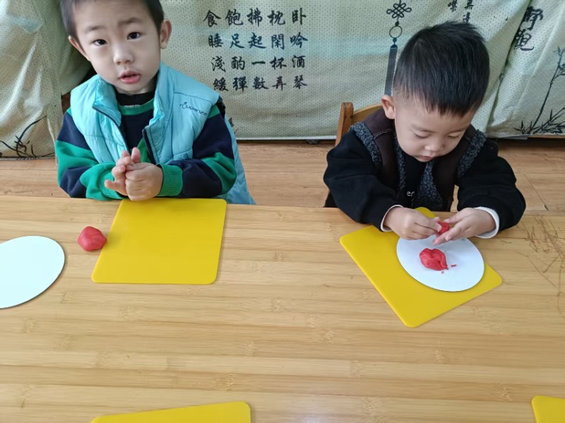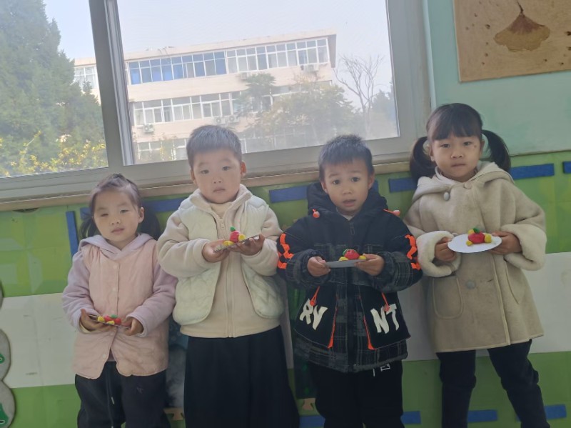 今天老师带我们一起制作了面塑《苹果娃娃》,看一个个小苹果,是不是很可爱呢~