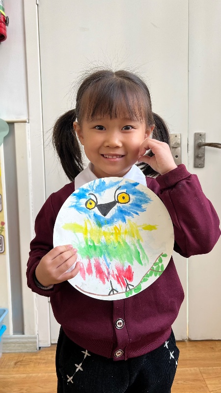 《猫头鹰穿花衣》:新乡市城建幼儿园大一班