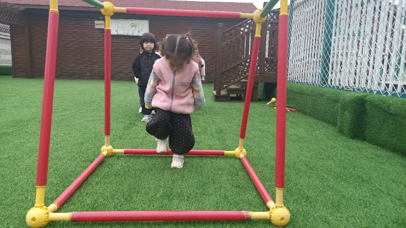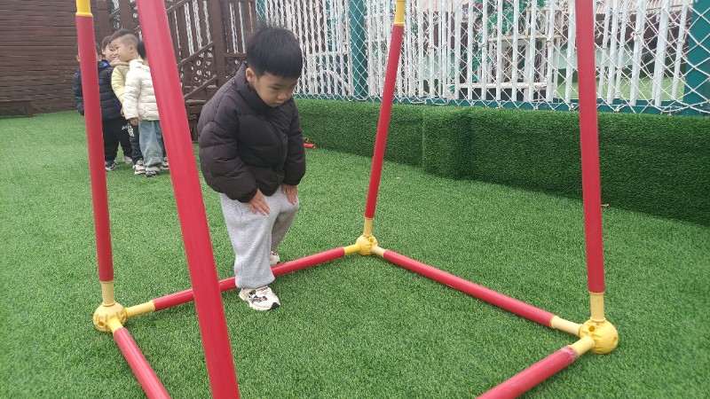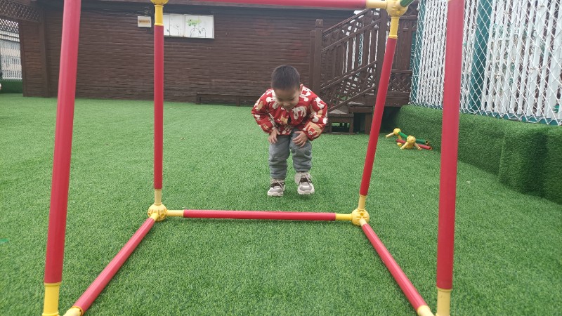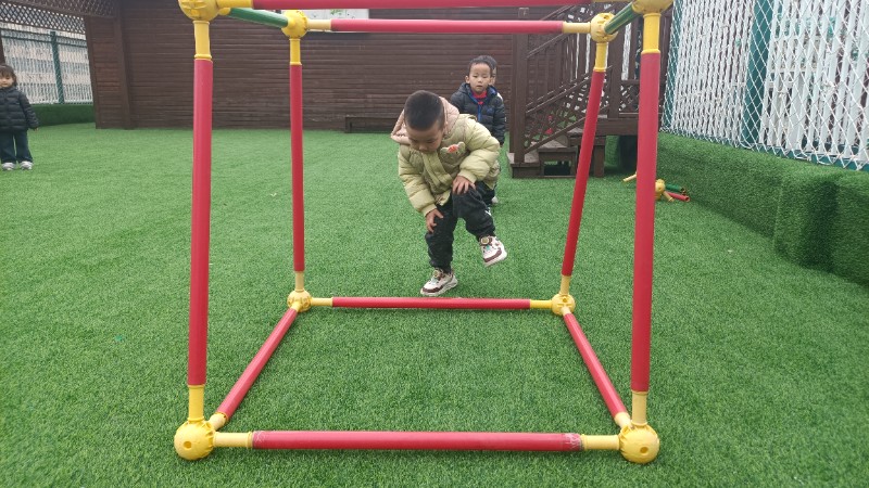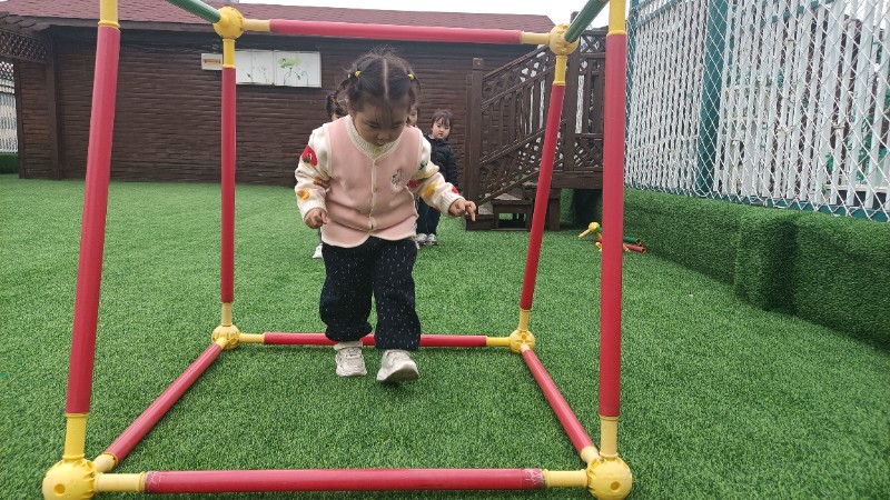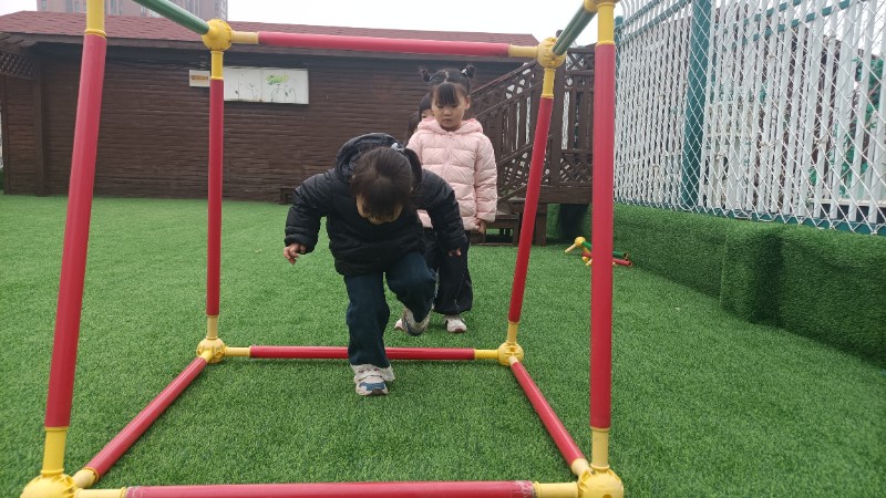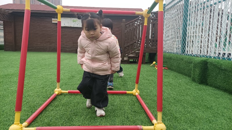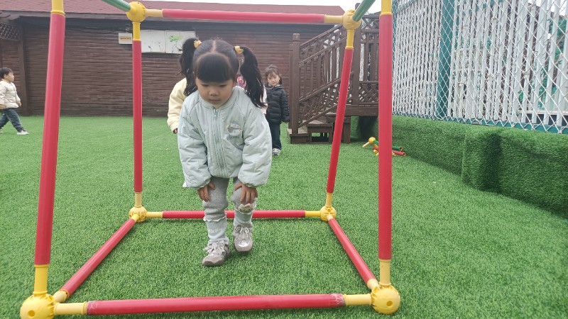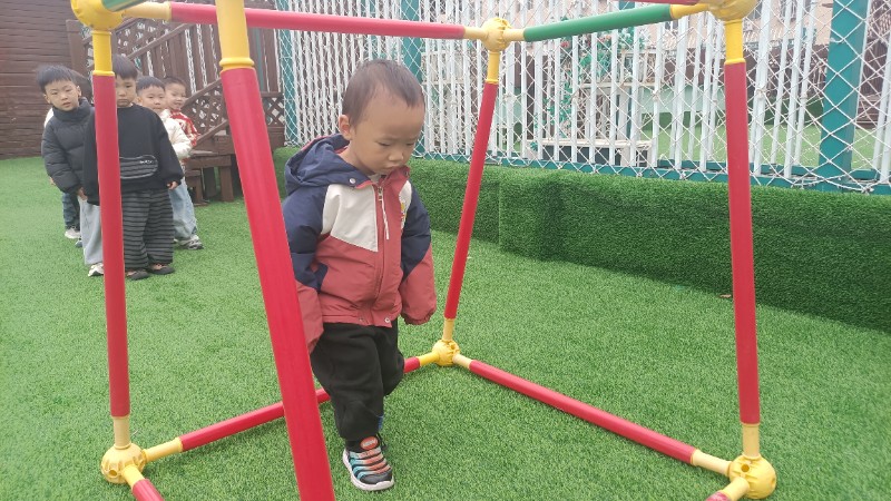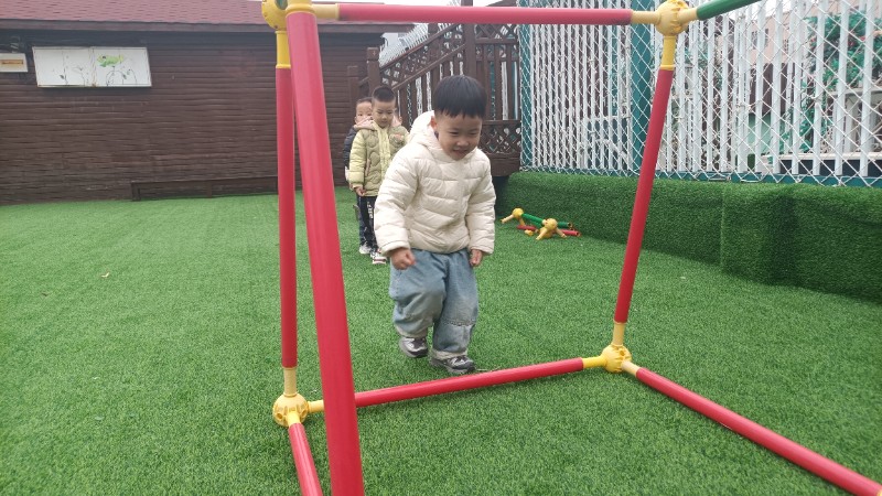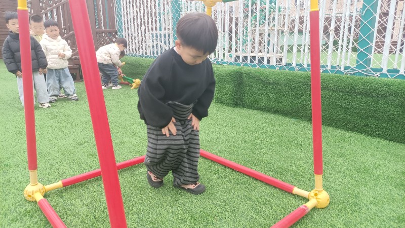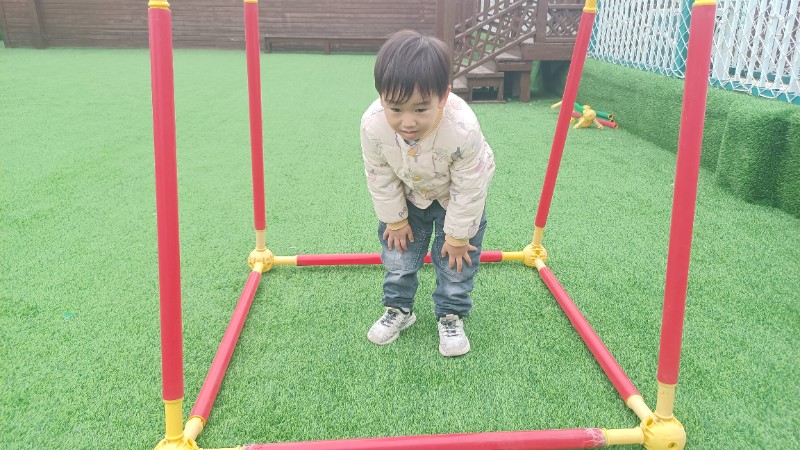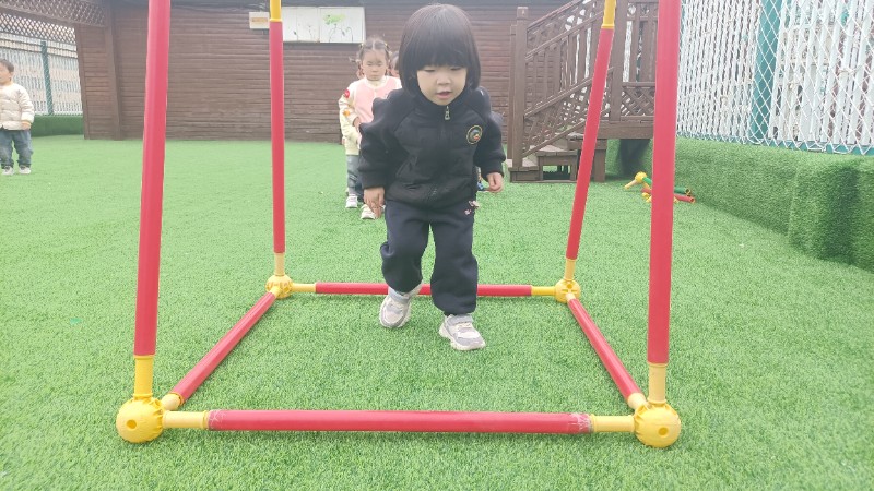 幼儿园生活就像万花筒,缤纷精彩。孩子们的快乐也很简单,一句笑话是快乐,玩游戏也是快乐!在游戏中学会了弯腰、低头、屈膝钻山洞,快乐真是无处不在。