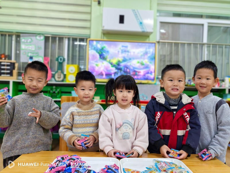 祝你节日快乐,祝你生日快乐!孩子们甜甜的歌声和祝福声充满了教室!