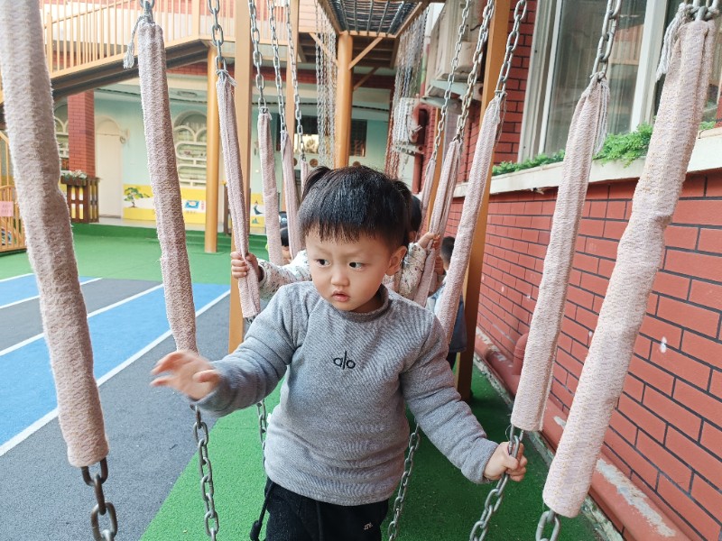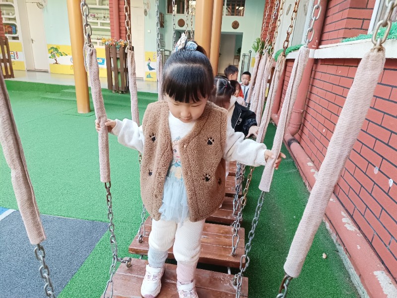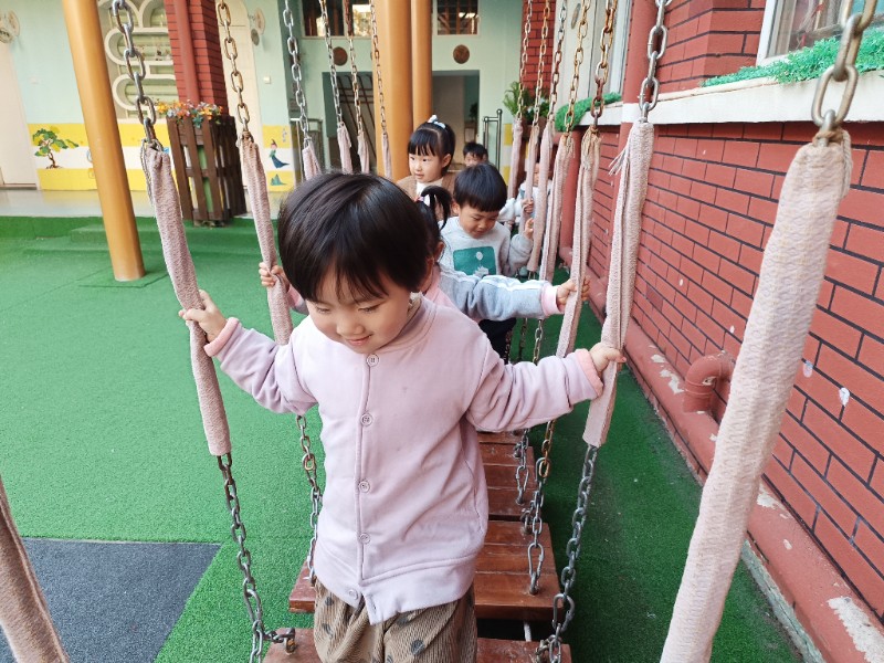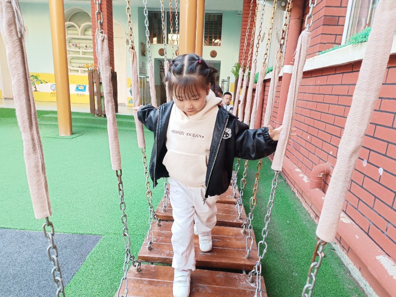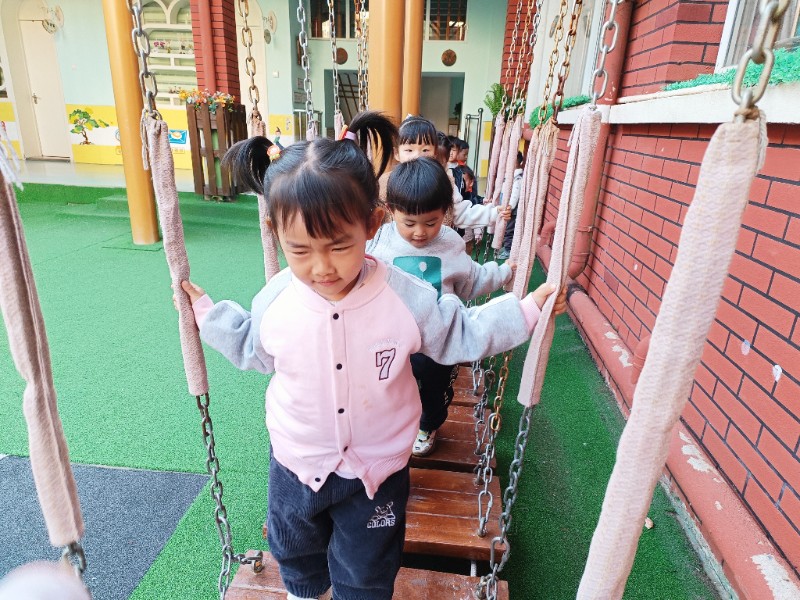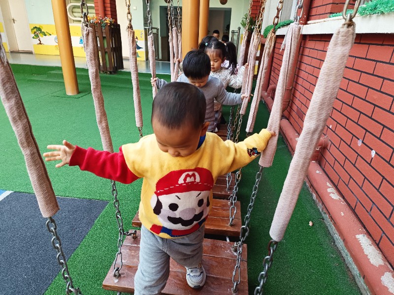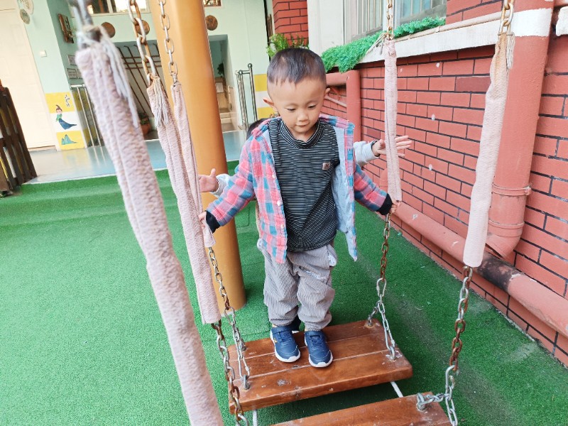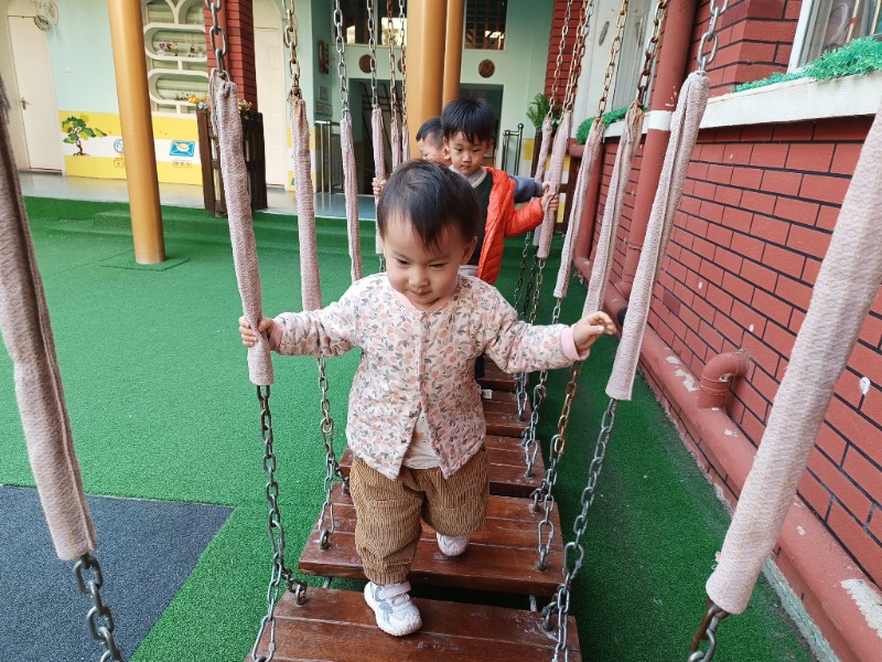 户外活动是小朋友们最喜欢的项目之一,看宝贝们脸上洋溢的笑脸,孩子们玩的很开心~ 一起看看宝贝们走独木桥吧