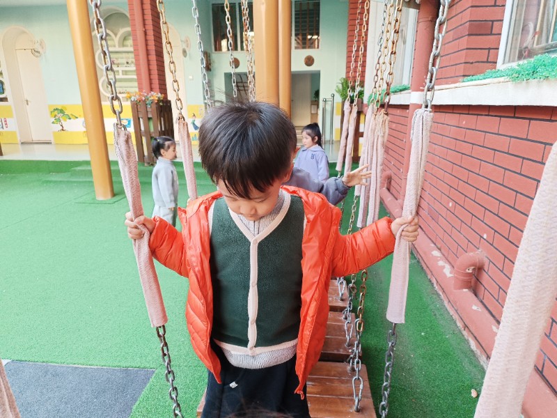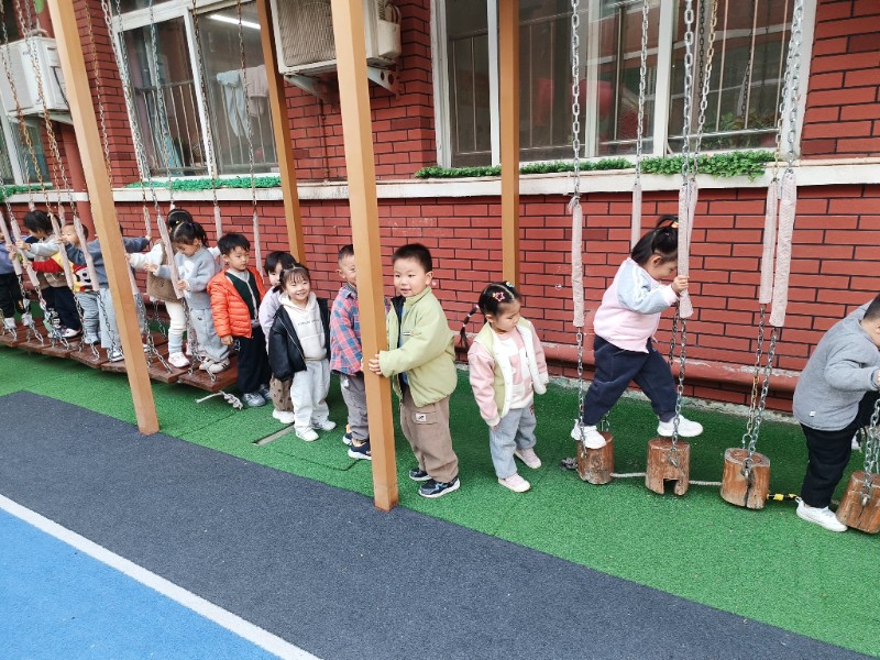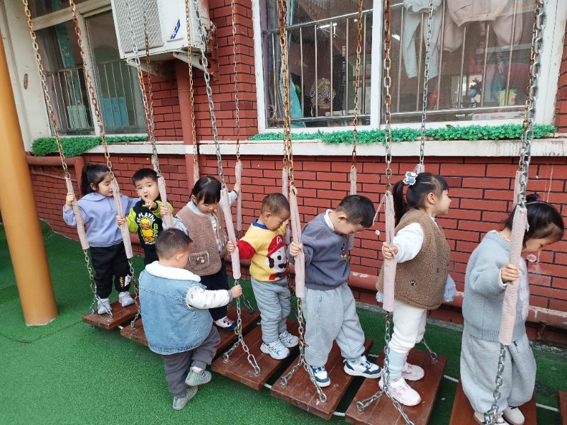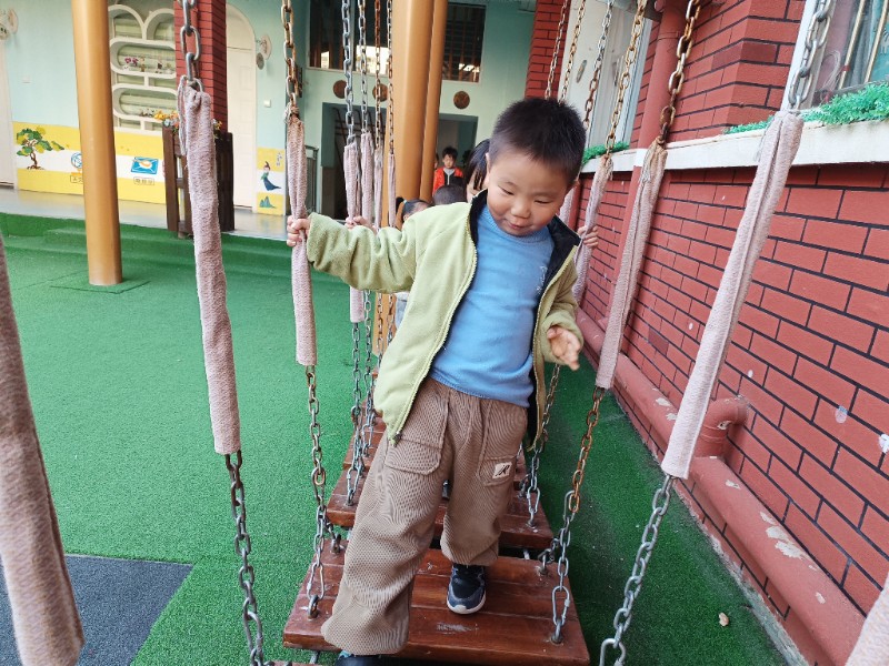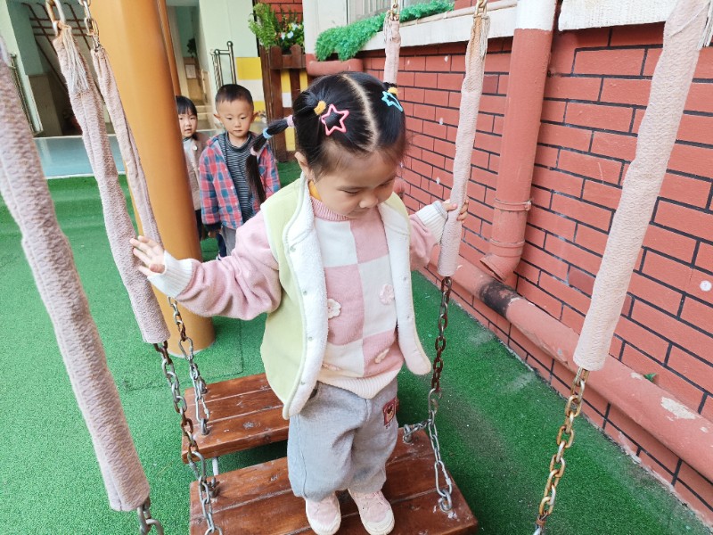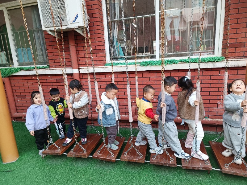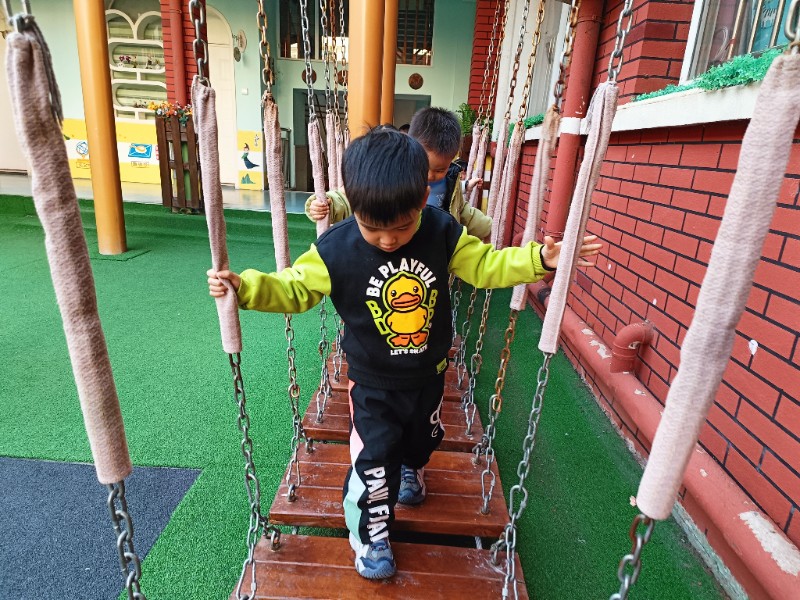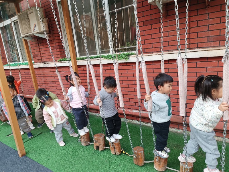 户外活动是小朋友们最喜欢的项目之一,看宝贝们脸上洋溢的笑脸,孩子们玩的很开心~ 一起看看宝贝们走独木桥吧