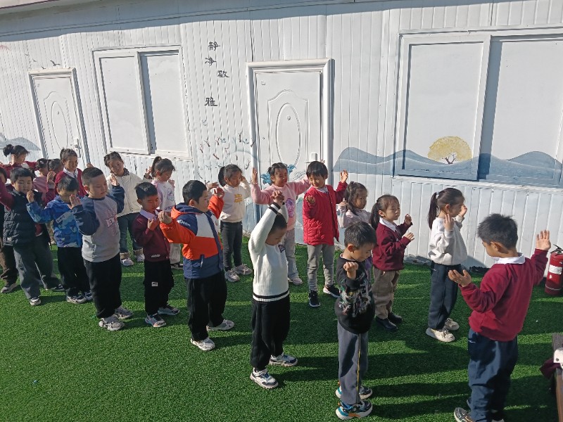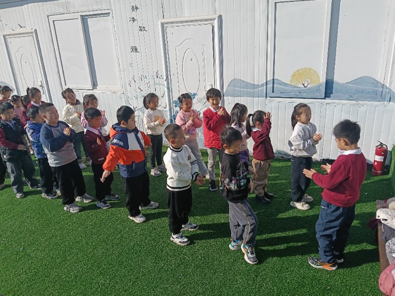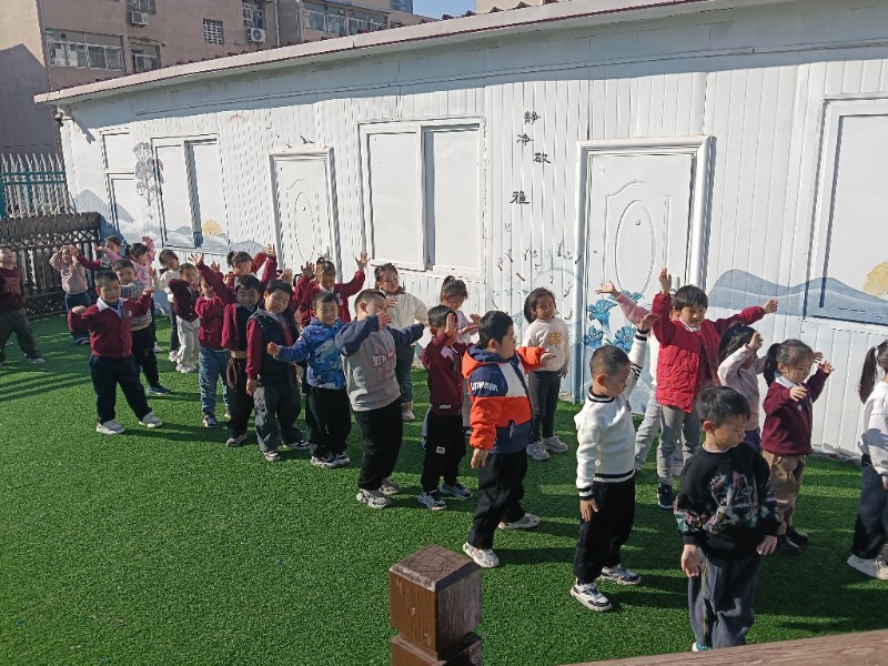 伸伸臂、弯弯腰, 学青蛙跳,仿小猴闹, 健康操里乐趣多, 天天锻炼身体好!