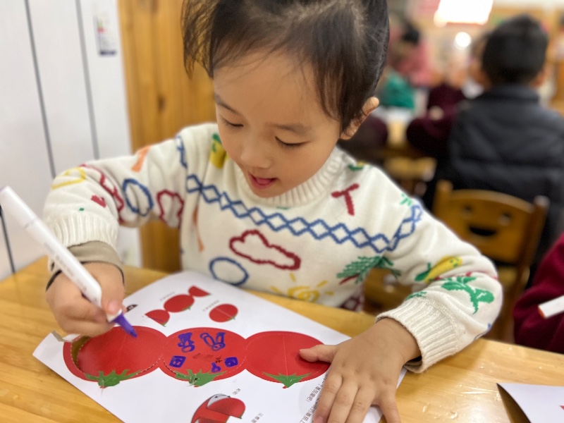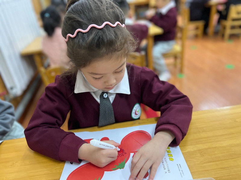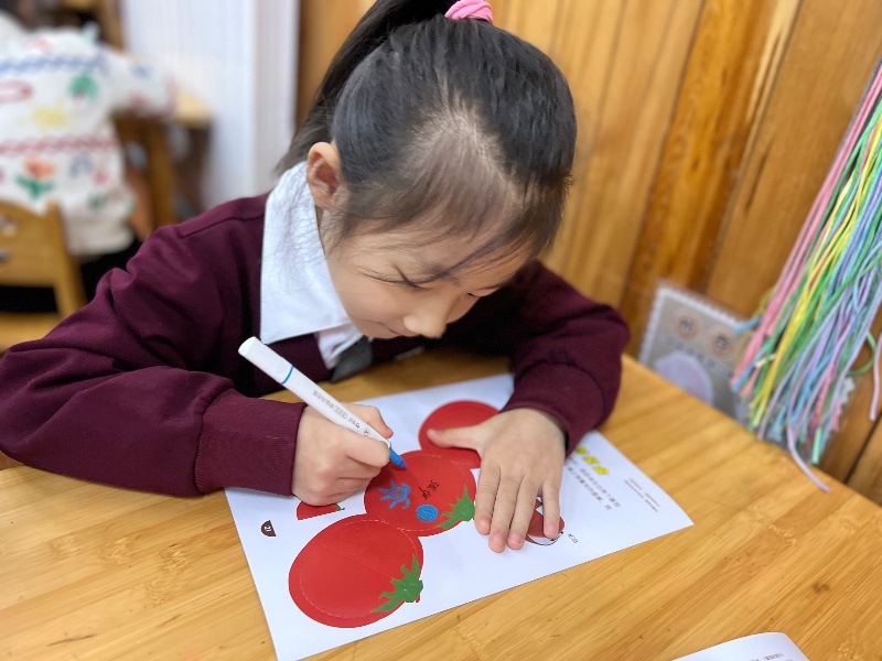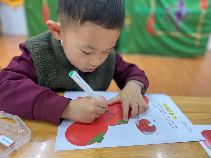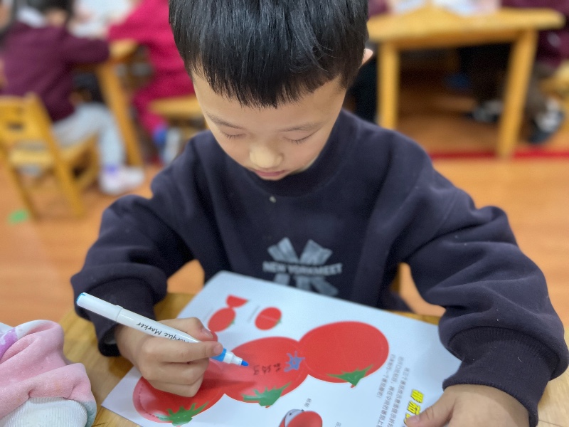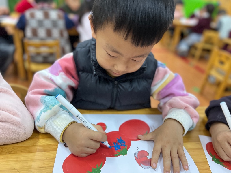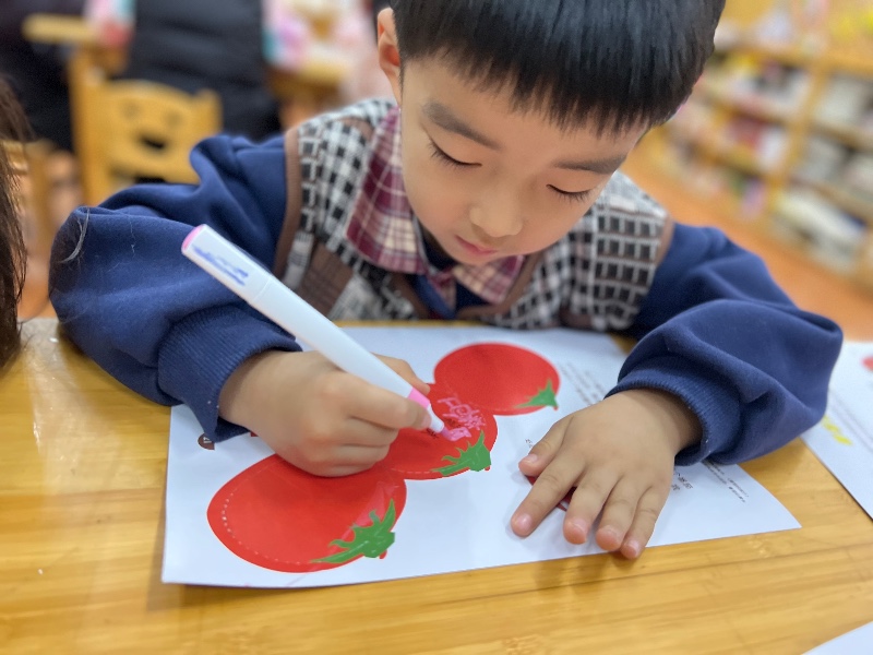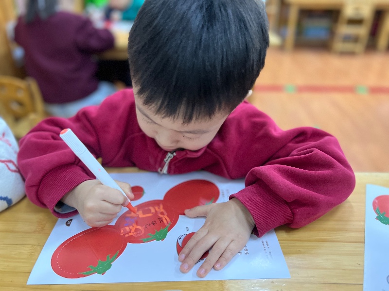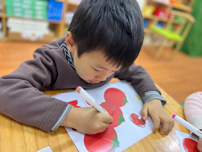 在番茄🍅的中间画上你喜欢的图案,来制作一个番茄屋吧!