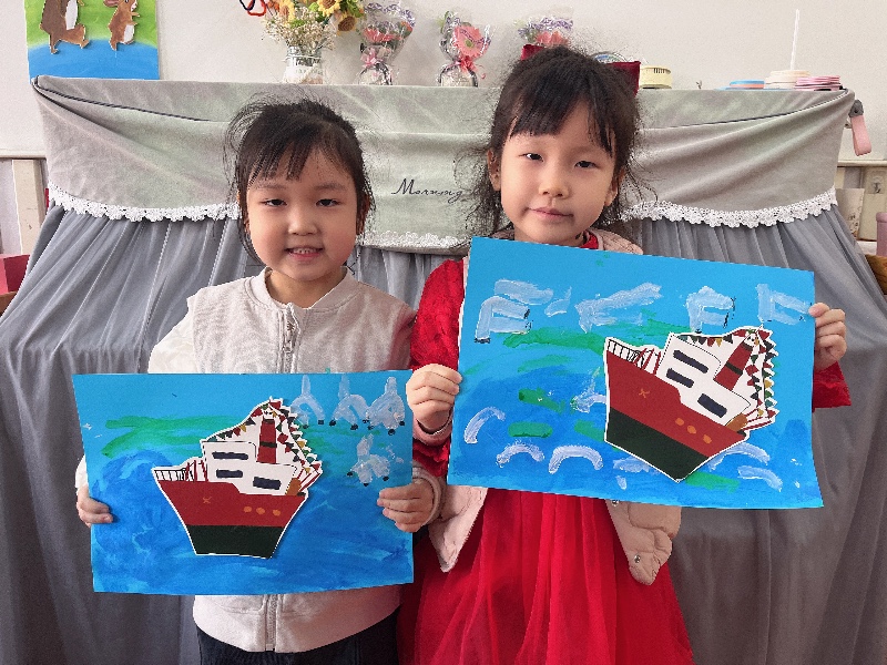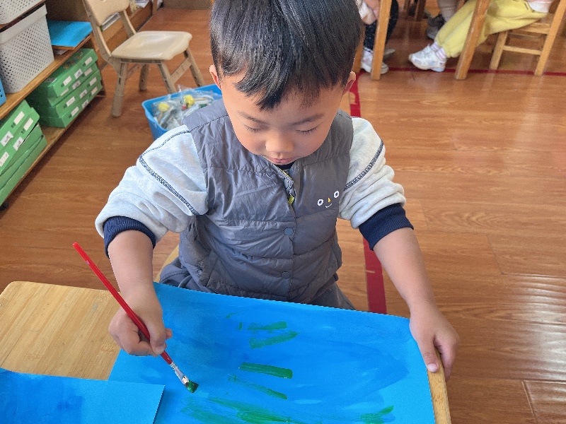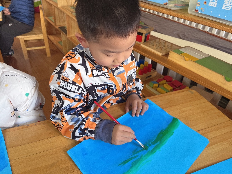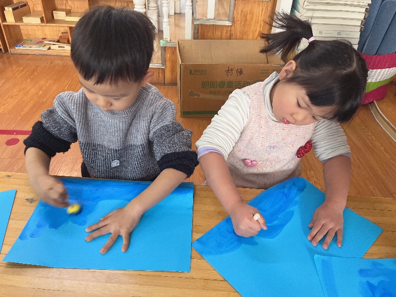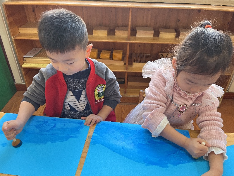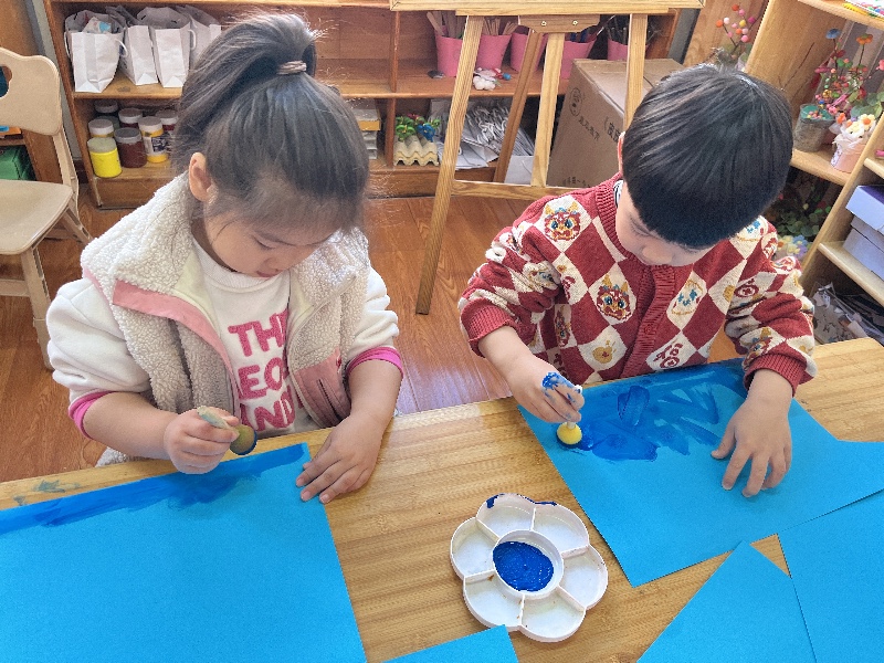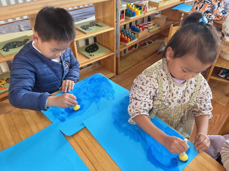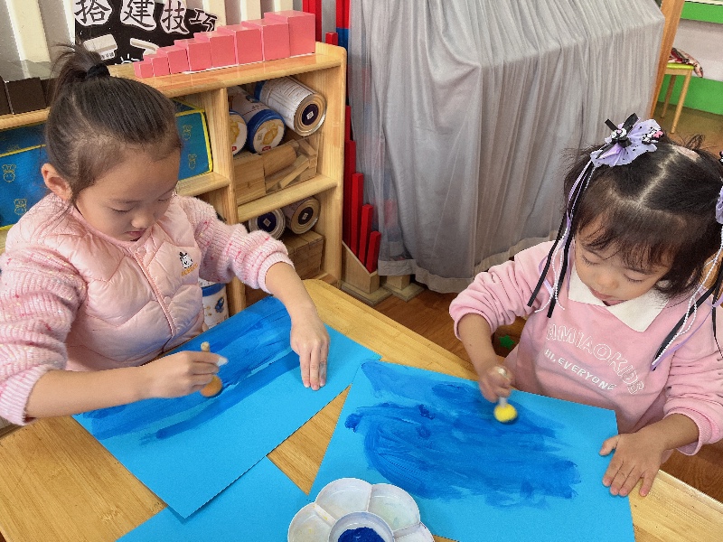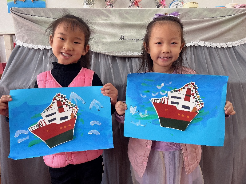 从认真刷色的专注,到收获‘航海大作’的开心🥳 蓝颜料里藏着的,是属于小朋友的大海和船🚢