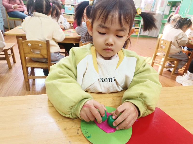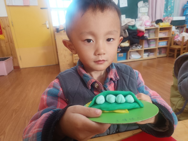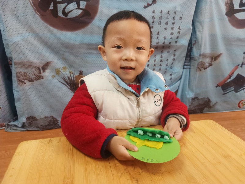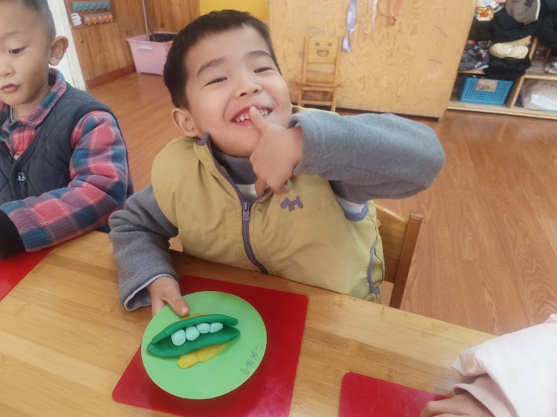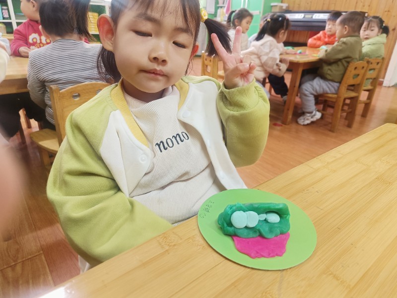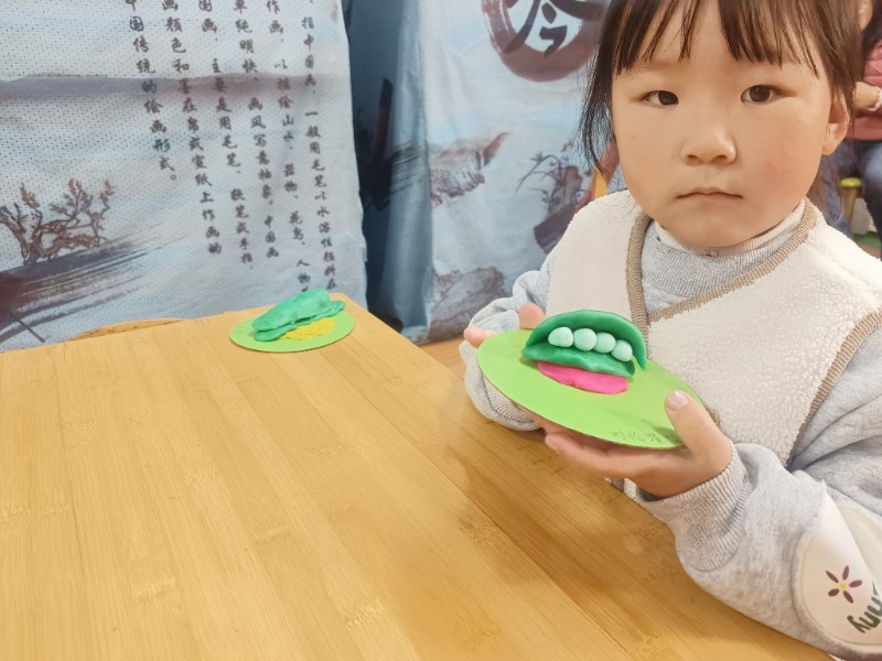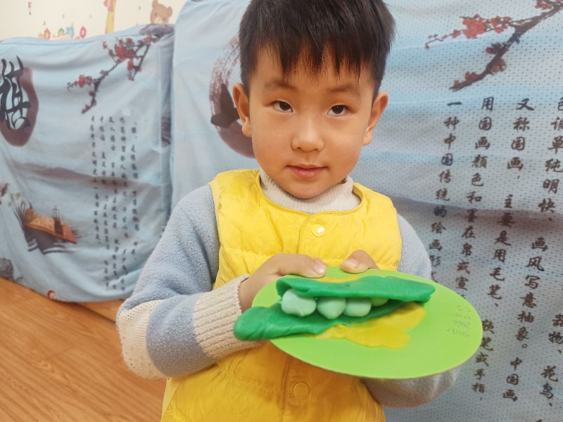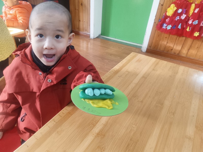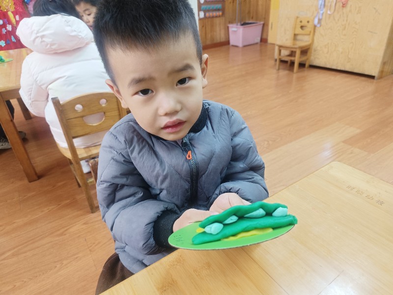 宝贝们化身“小小艺术家”,揉、搓、捏、团,用面团做出了一颗颗圆滚滚、可爱的豌豆~ 在活动中,宝贝们的手部精细动作和创造力得到了充分锻炼,还体验到了动手操作的乐趣!