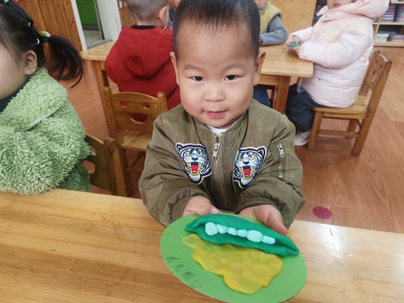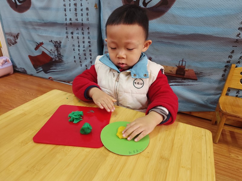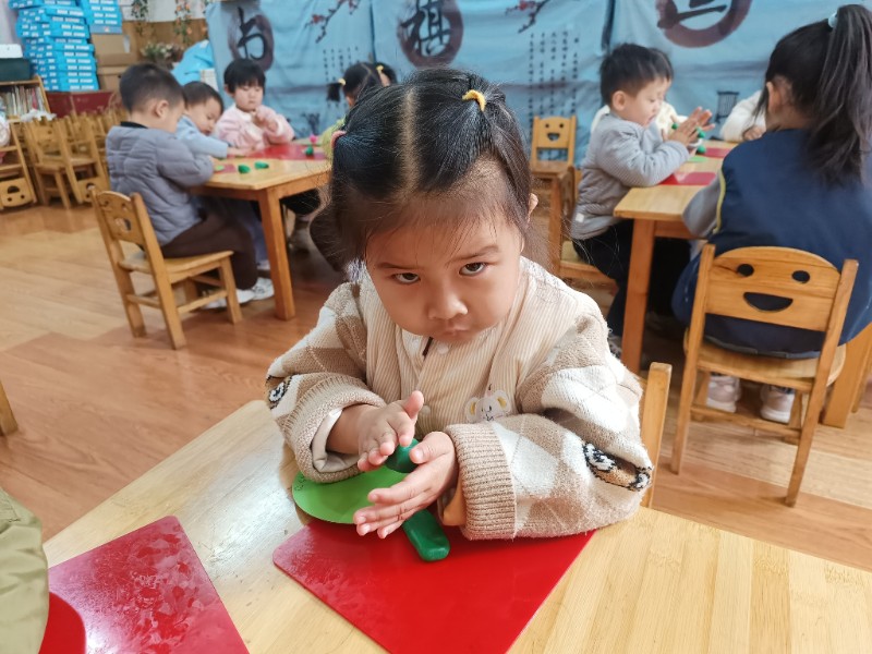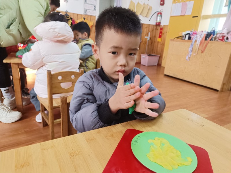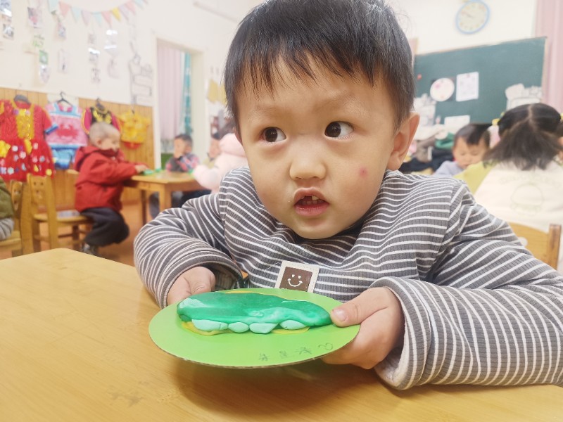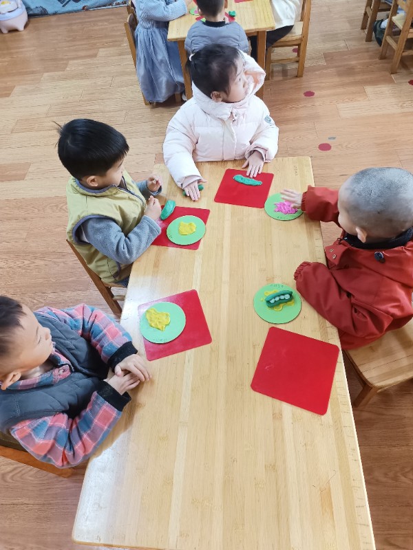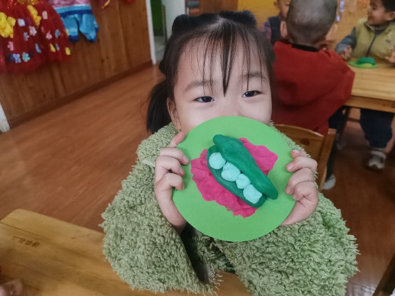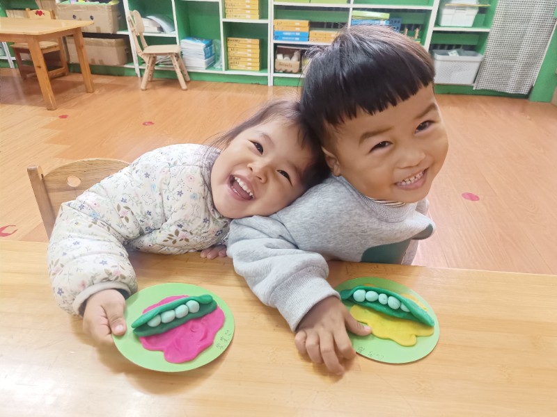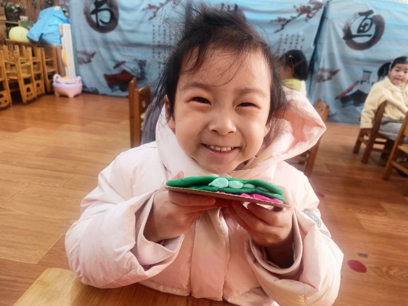 宝贝们化身“小小艺术家”,揉、搓、捏、团,用面团做出了一颗颗圆滚滚、可爱的豌豆~ 在活动中,宝贝们的手部精细动作和创造力得到了充分锻炼,还体验到了动手操作的乐趣!