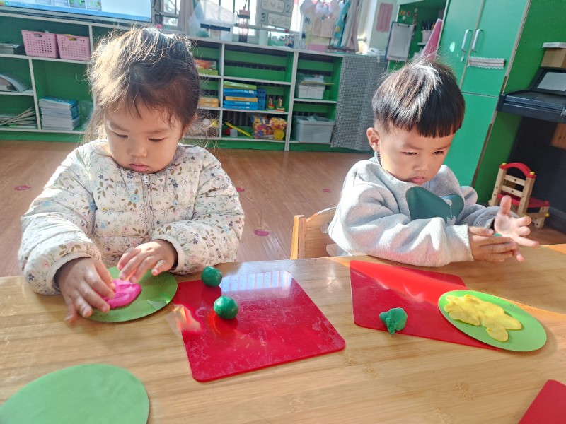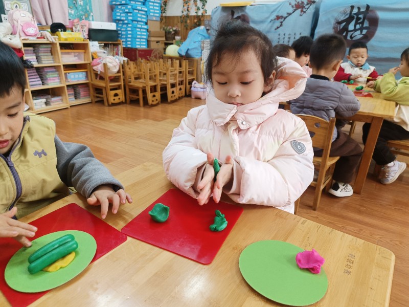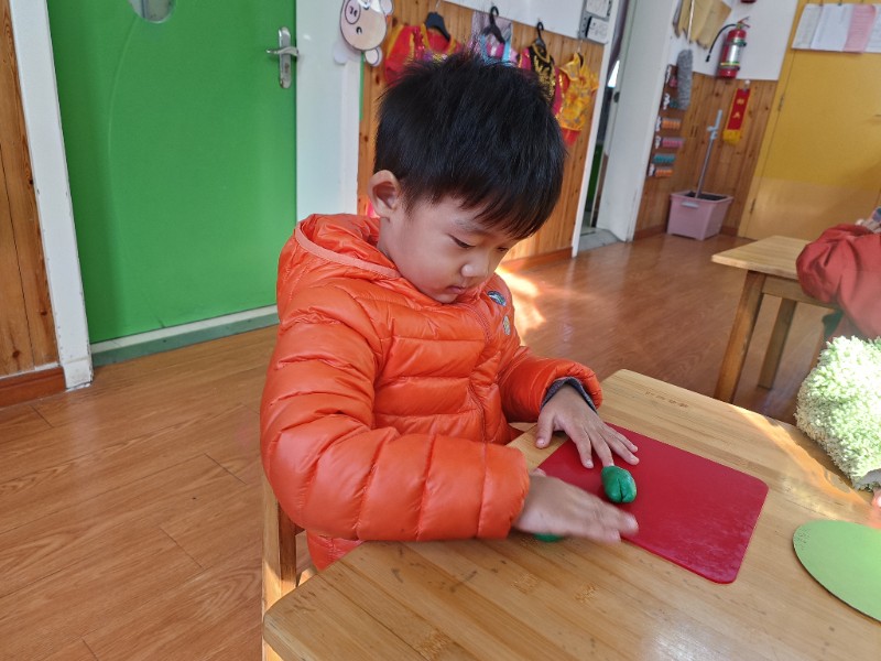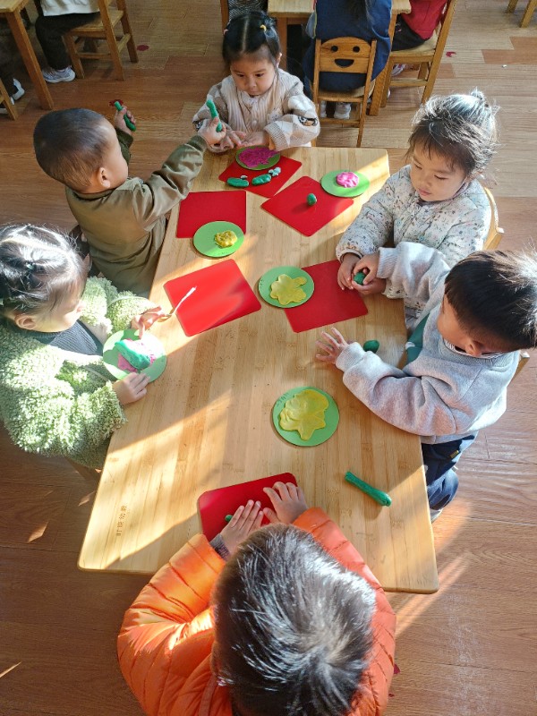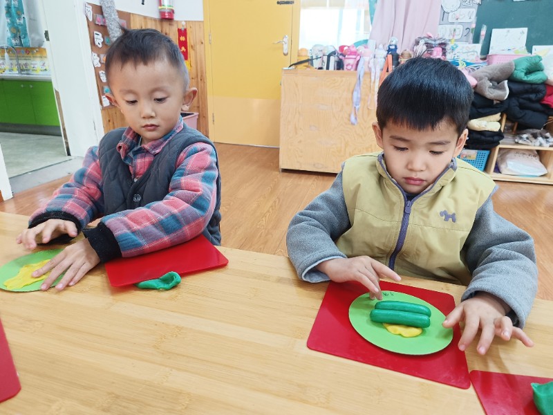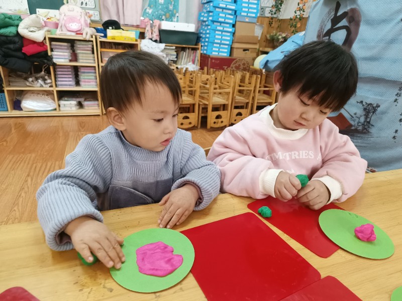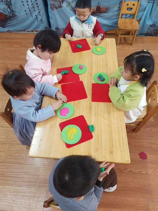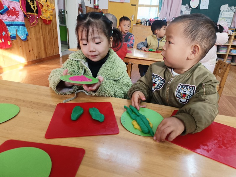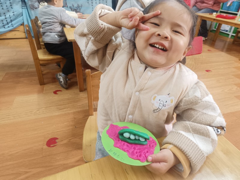 宝贝们化身“小小艺术家”,揉、搓、捏、团,用面团做出了一颗颗圆滚滚、可爱的豌豆~ 在活动中,宝贝们的手部精细动作和创造力得到了充分锻炼,还体验到了动手操作的乐趣!