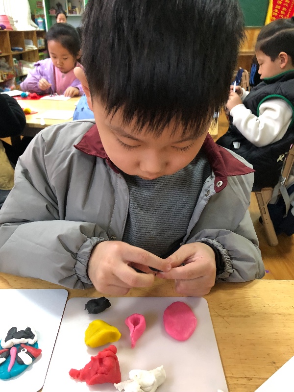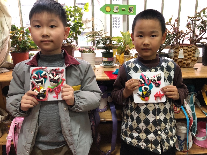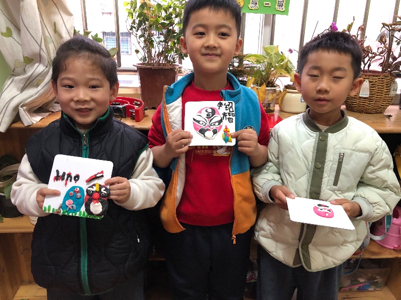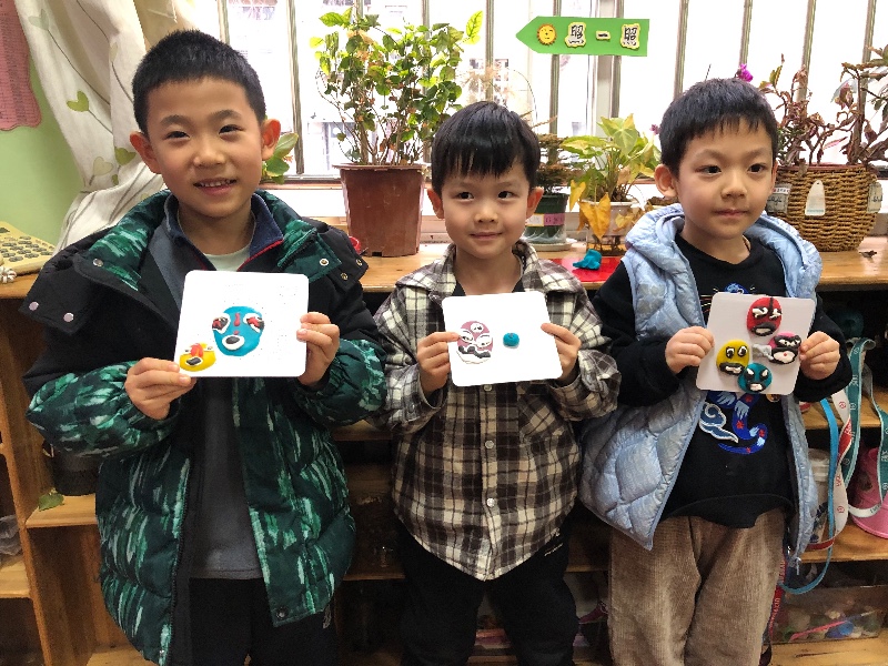 京剧是我们中华民族的国粹,孩子们通过面塑活动——《脸谱》,初步了解中国戏曲的艺术特色及京剧脸谱艺术的特点、谱式、色彩等方面的基础知识,了解京剧脸谱艺术富有的图案美,具有鲜明的思想性和艺术性,培养孩子对京剧脸谱艺术的欣赏力。京剧演员的脸谱很有趣,黑脸儿、白脸儿、红脸儿、花脸儿、余涂抹抹,像一个五颜六色的假面具。不同颜色的脸谱,表示不同的含义:黑脸儿代表正义和刚直,比如包公;白脸儿大多表示奸诈的坏人,例如高评论秦桧;白脸儿有时也代表老年英雄和僧人形象; 红脸儿代表正直、忠勇,最有名的就是关羽啦!