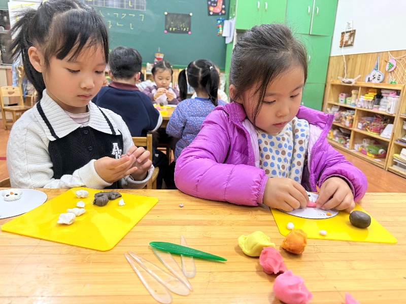 幼儿园的冬季课堂,创意无限迸发。彩泥在孩子们手中跳跃,变成了一件件超有范儿的冬日作品。