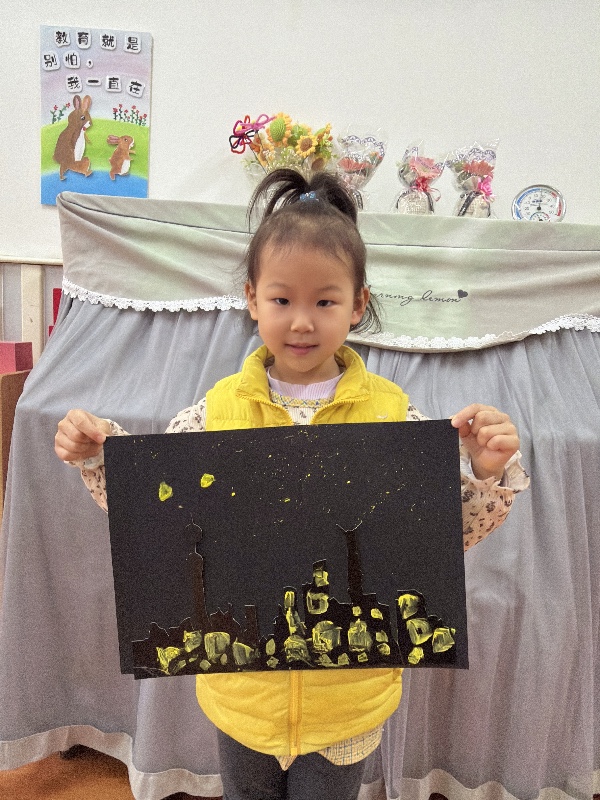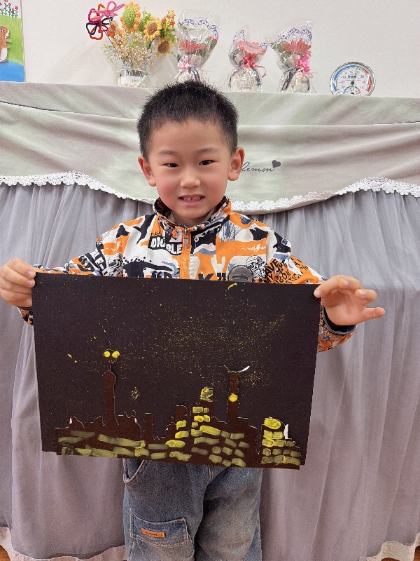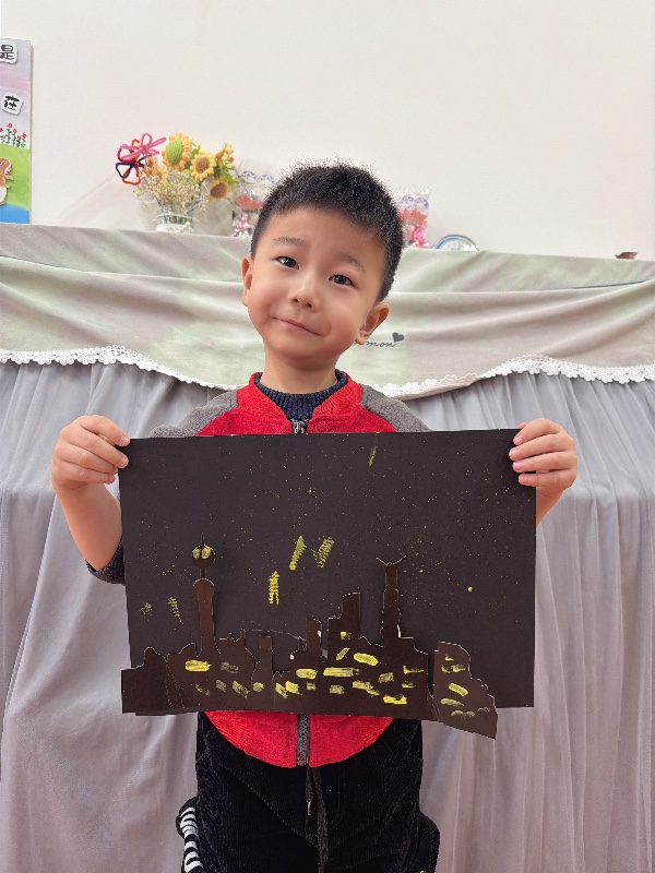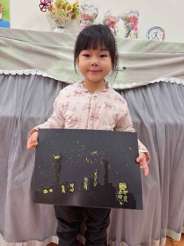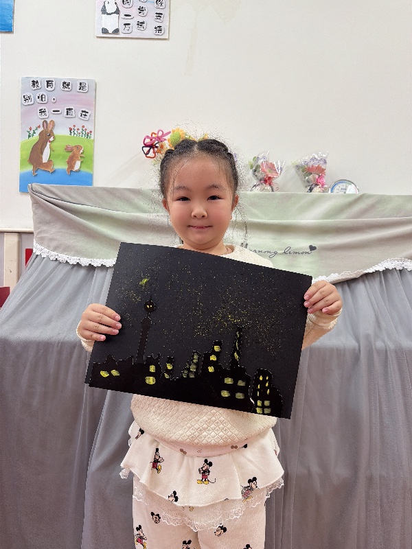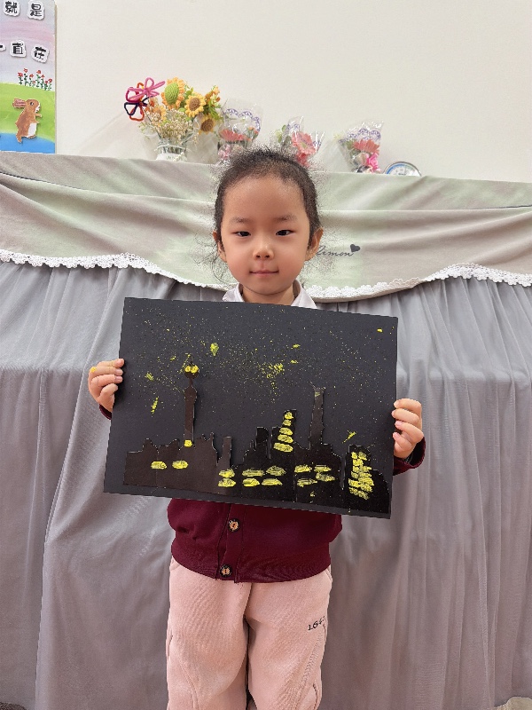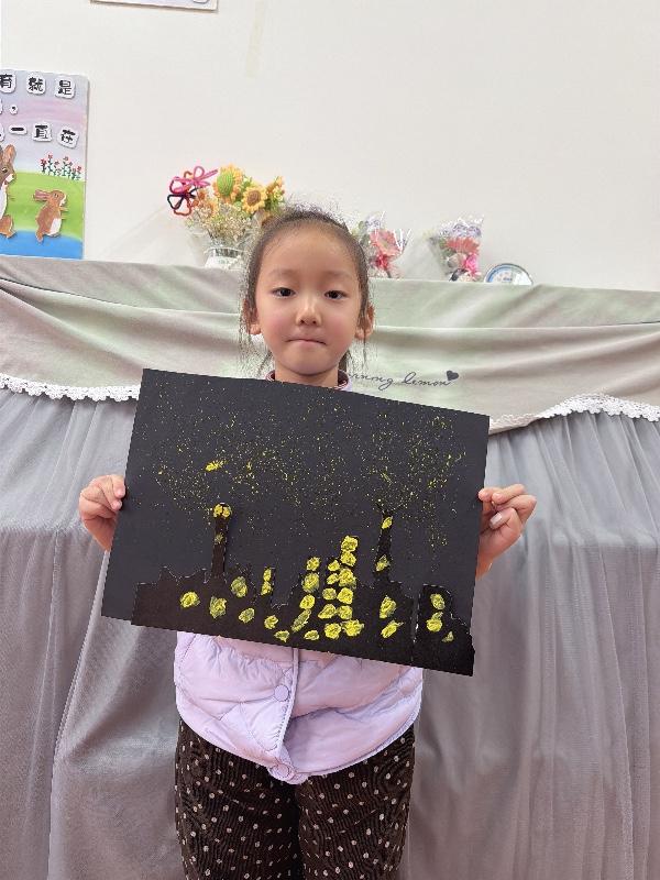 美术——夜空下的城市:新乡市城建幼儿园大二班