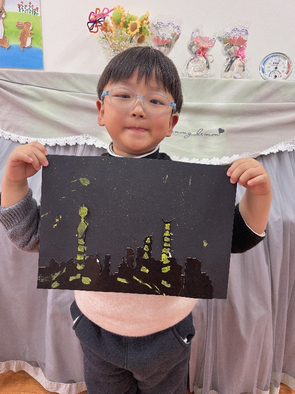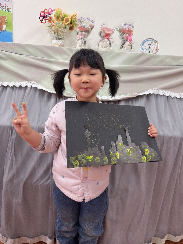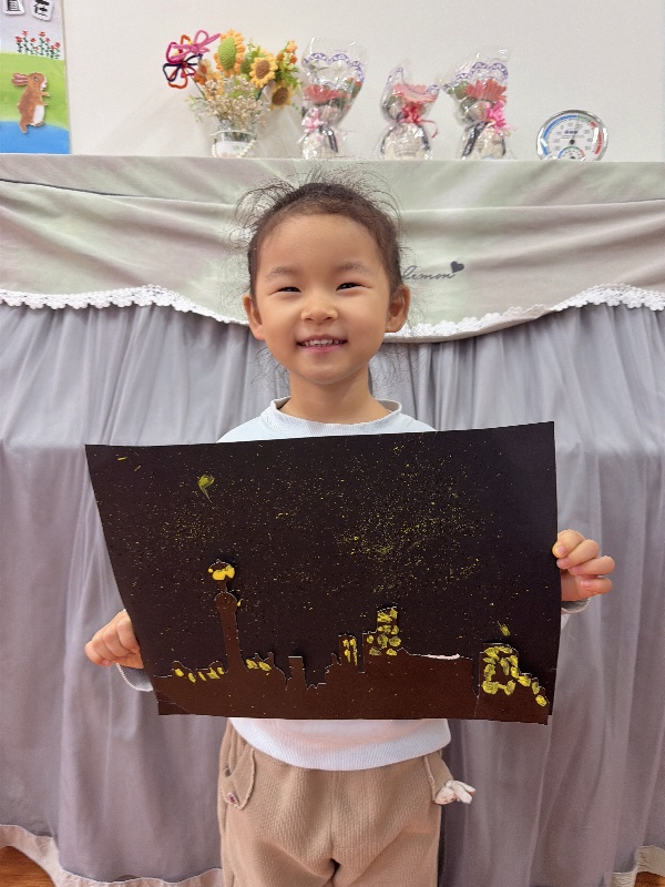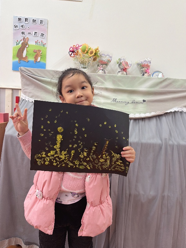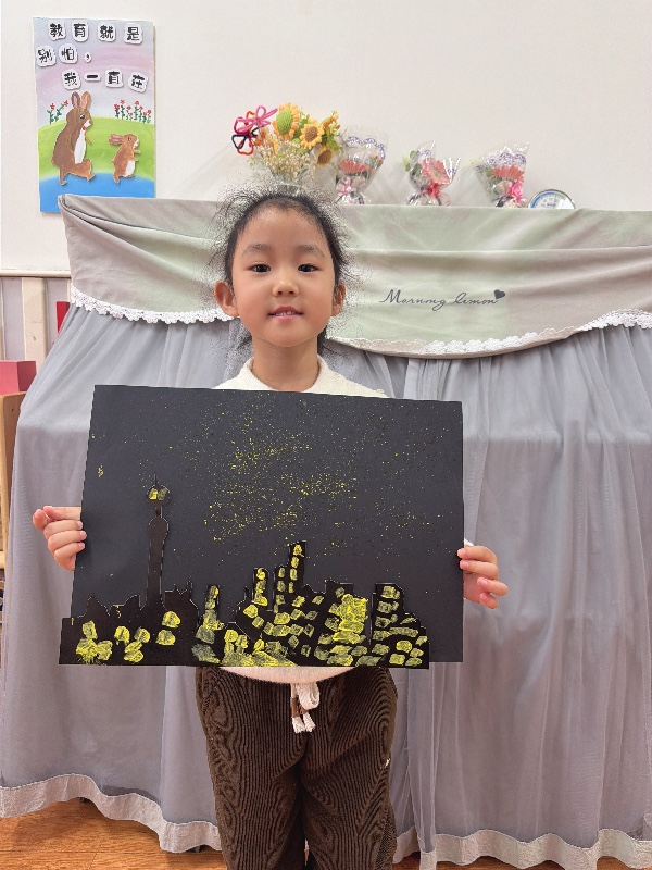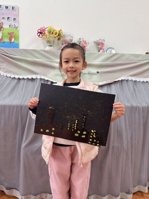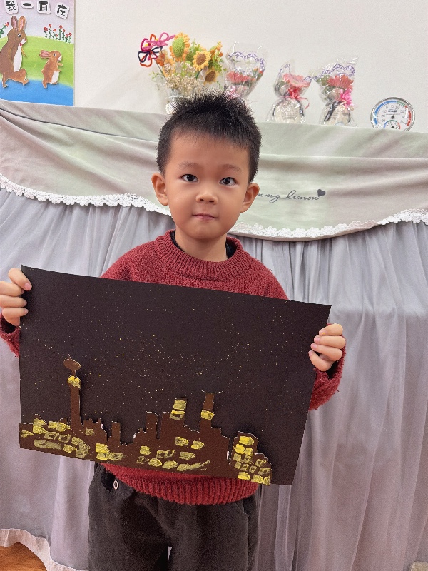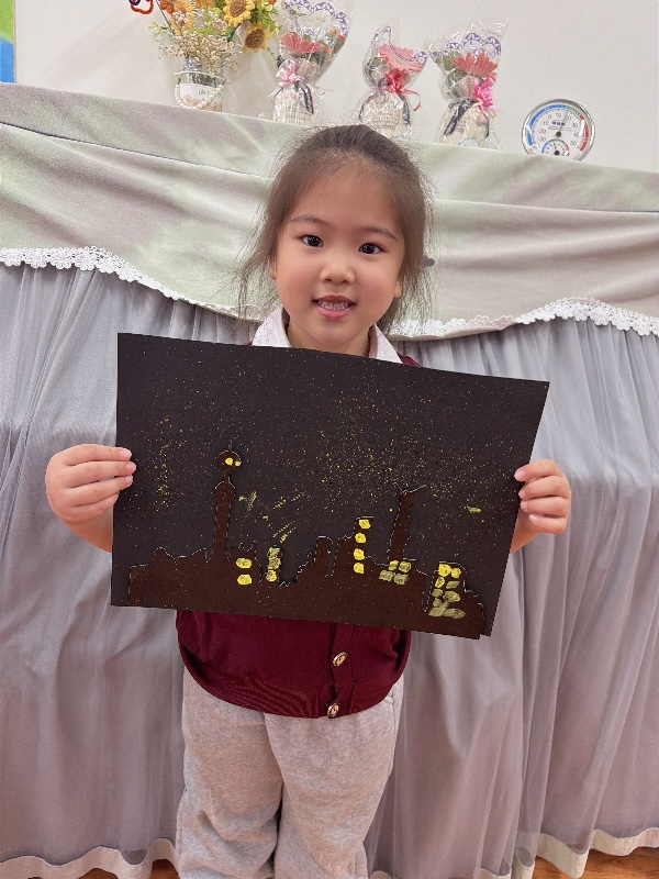 美术——夜空下的城市:新乡市城建幼儿园大二班