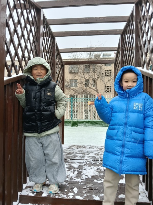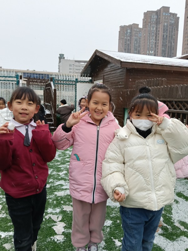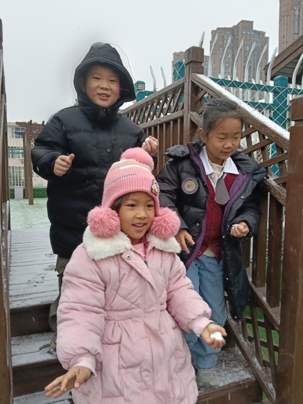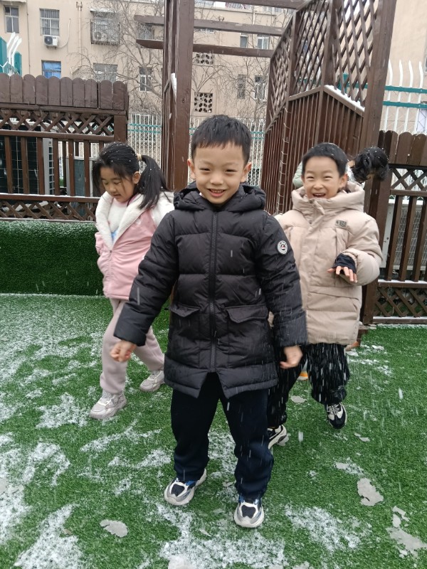 2025年第一场雪,把幼儿园变成了童话世界。小宝贝们追着雪花跑,睫毛上沾着雪绒花,脸蛋冻得红扑扑,却笑得比阳光还灿烂——原来快乐,真的会跟着雪花一起降落呀!