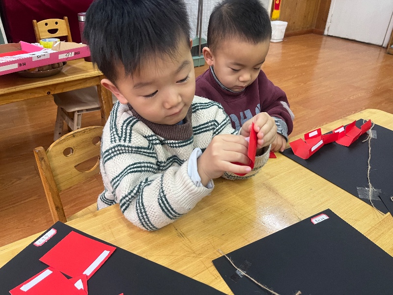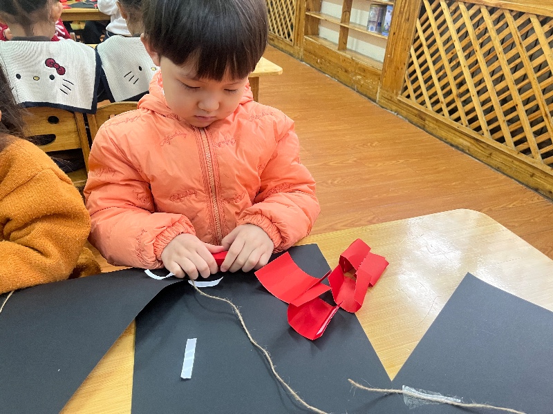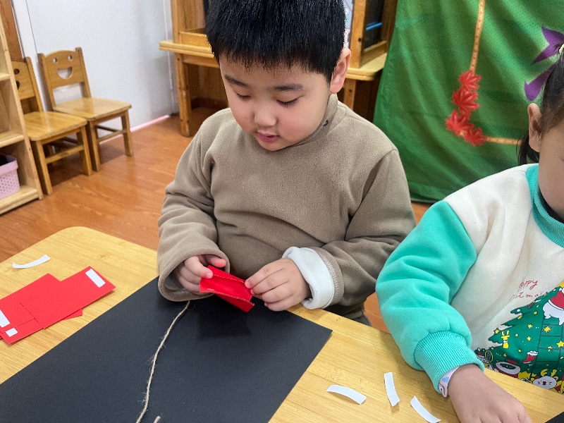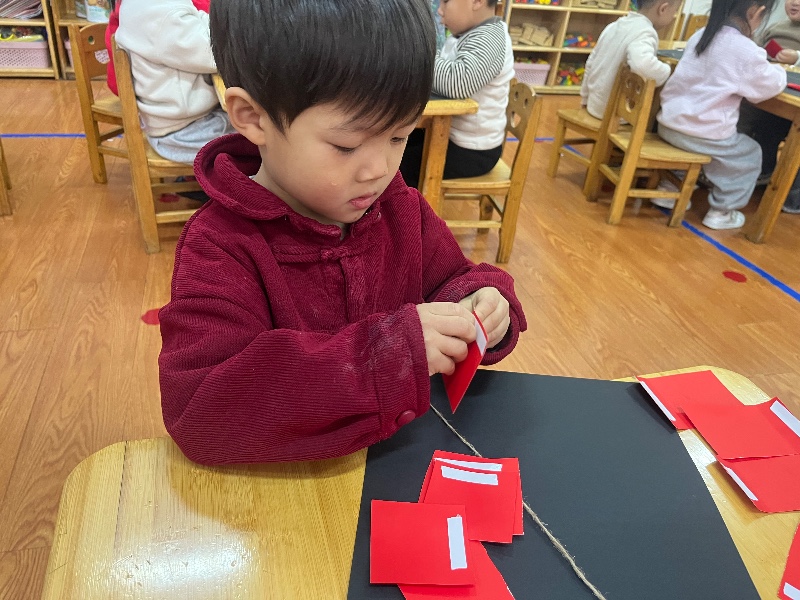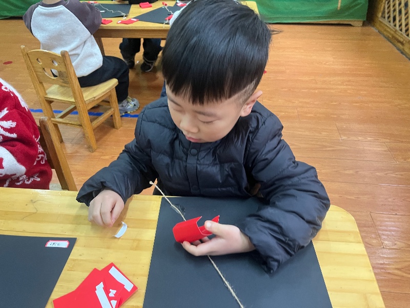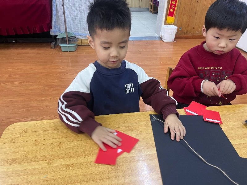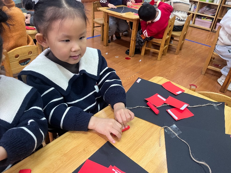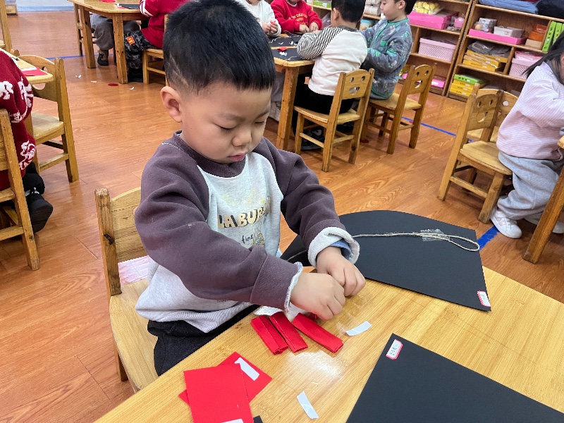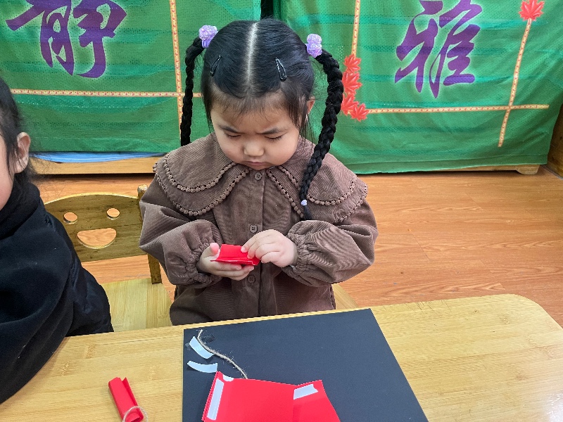 红红火火迎新年,幼儿园里鞭炮响!用彩纸卷成“小炮筒”,金纸条贴出“引信”,红绳串起“噼里啪啦”的祝福。每一步都藏着年味儿,每串鞭炮都像在说:“新年到,好运到!”