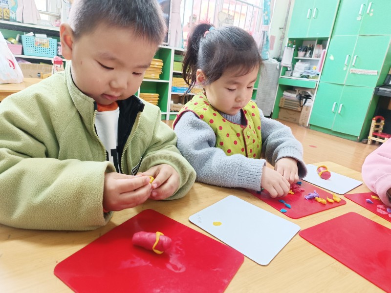 大家化身小小艺术家,用面泥精心制作了《过年了-鞭炮》作品!孩子们揉、搓、捏、粘,在动手过程中感受传统民俗的乐趣,还锻炼了手部精细动作。