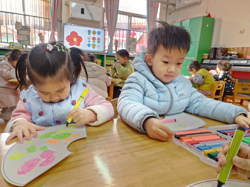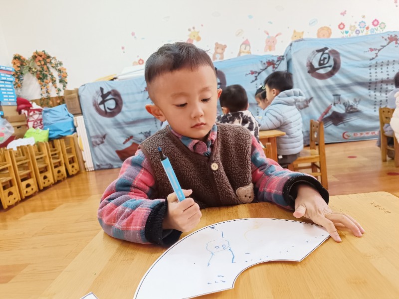 活动中,孩子们认识了梅花的形态特点,尝试用不同的绘画方式表现梅花的美,亲手制作了属于自己的梅花扇。