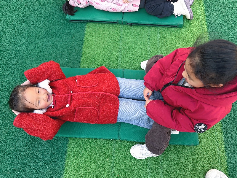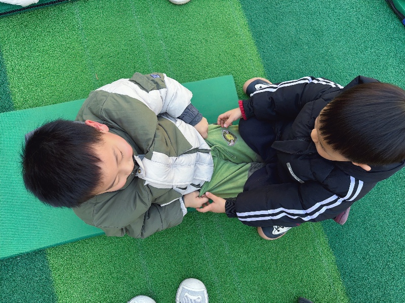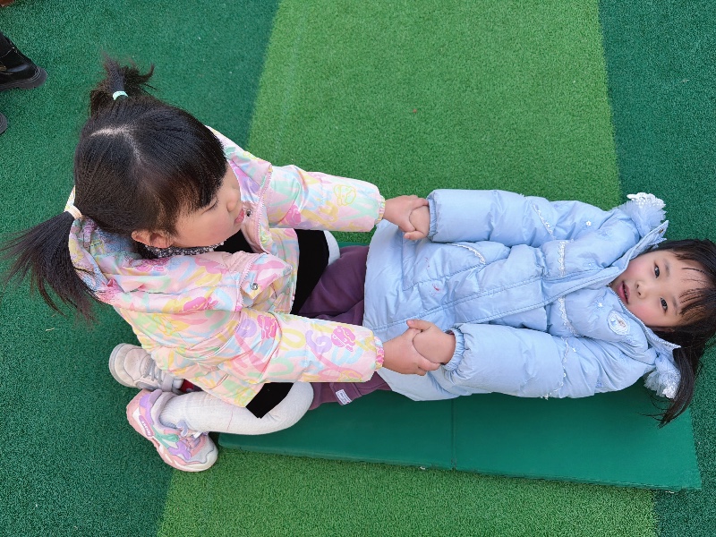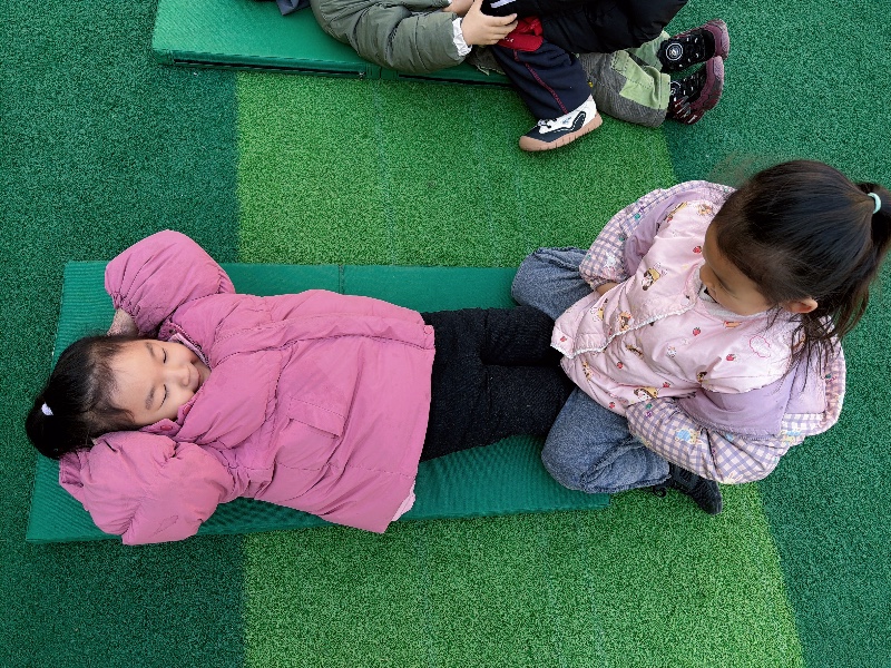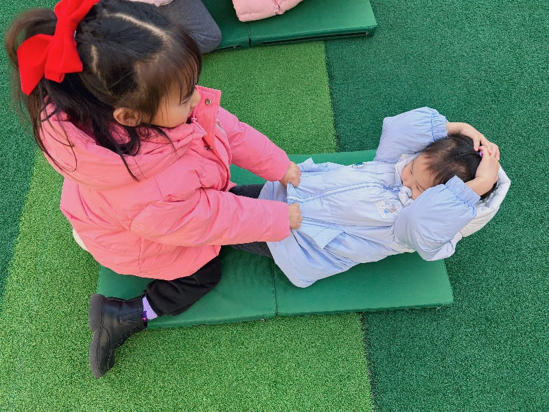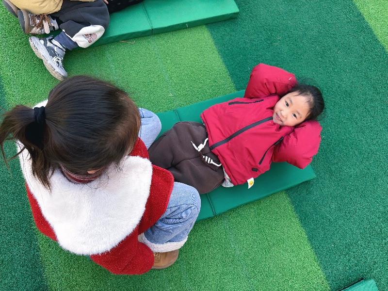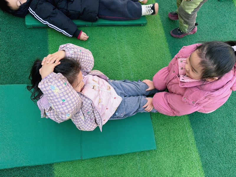 户外活动——仰卧起坐:新乡市城建幼儿园大二班