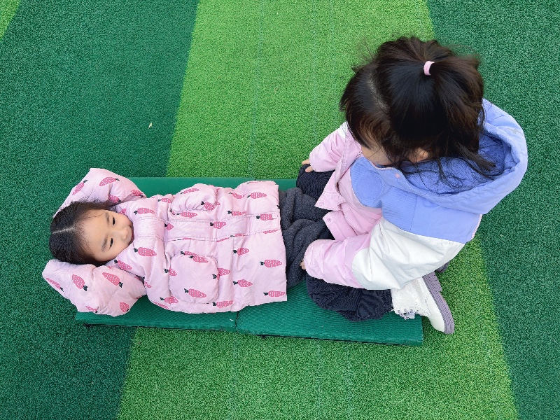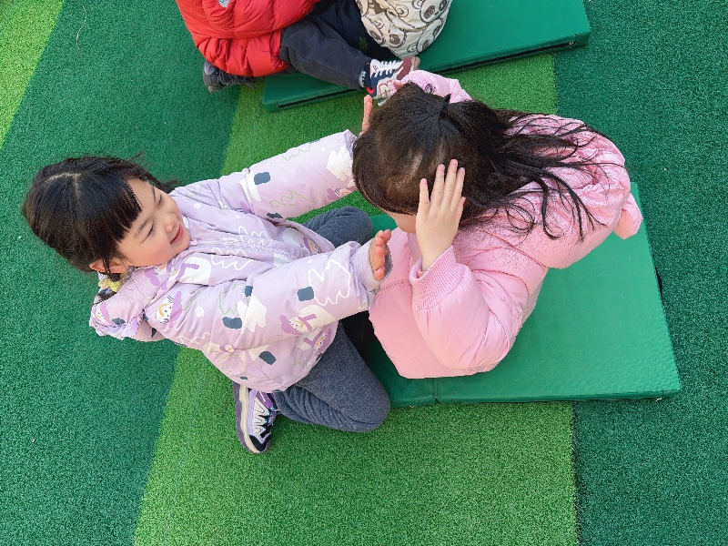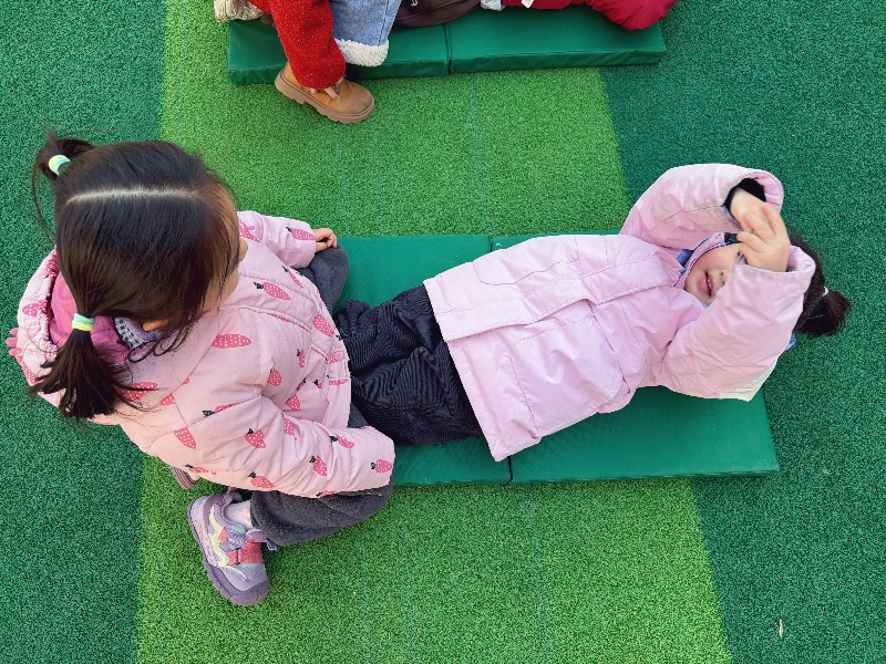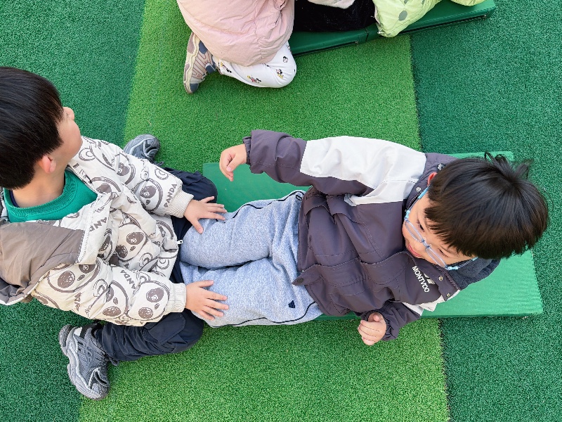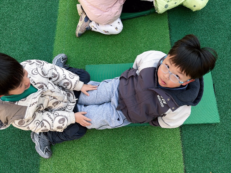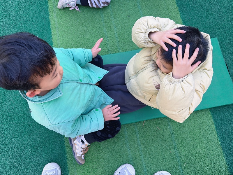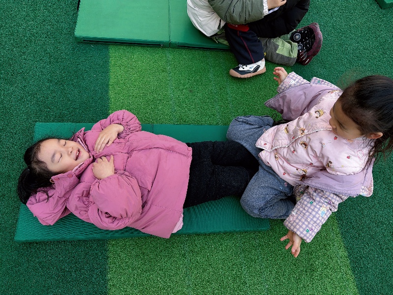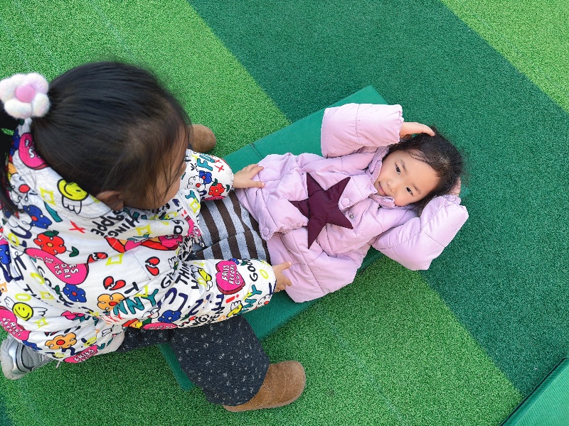户外活动——仰卧起坐:新乡市城建幼儿园大二班