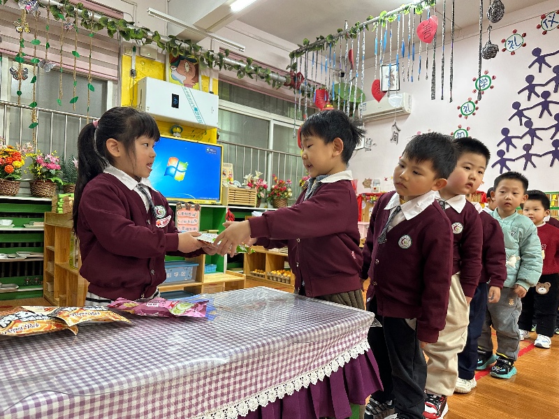 今天周炜佳带来了分享食物,分享给了中一班的小朋友,培养孩子自发的分享行为,让孩子充分体验给予及被给予带来的快乐和满足,以及人与人之间的温暖和爱。 其实,成长从不只是学会知识,更是学会爱与被爱。这场关于分享的活动,没有复杂的道理,却让孩子们在真实的互动中懂得:把快乐分享出去,就能收获两份甚至更多的快乐;把善意传递出去,就能收获满满的友谊。未来,我们会继续用这样温暖的小事,陪伴孩子们在爱与分享中慢慢长大~