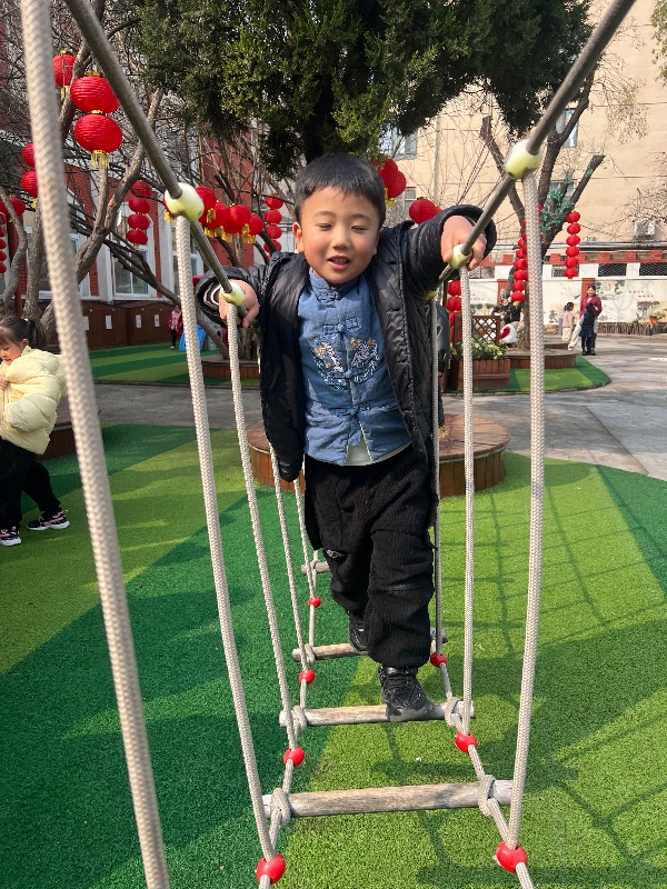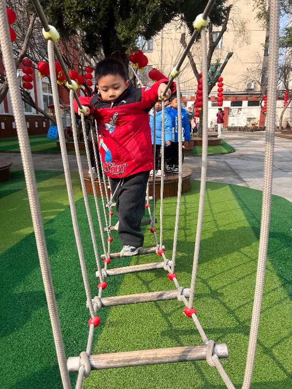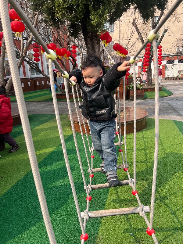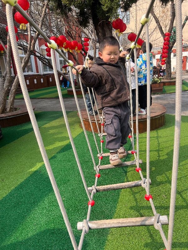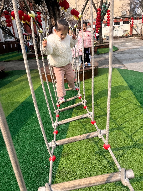 阳光明媚,我们来进行户外专注力培养:走绳梯