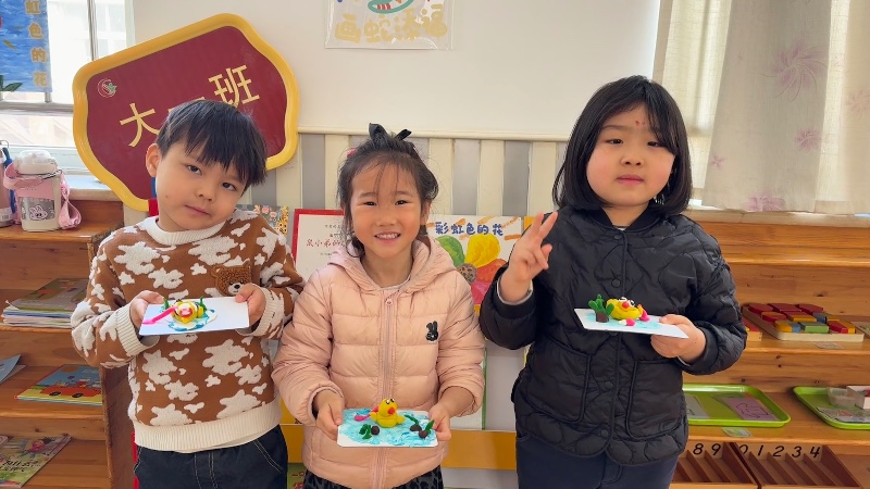 面塑《小鸭游啊游》:新乡市城建幼儿园大一班