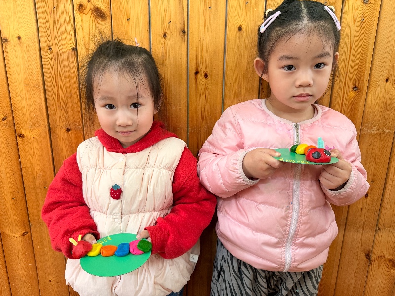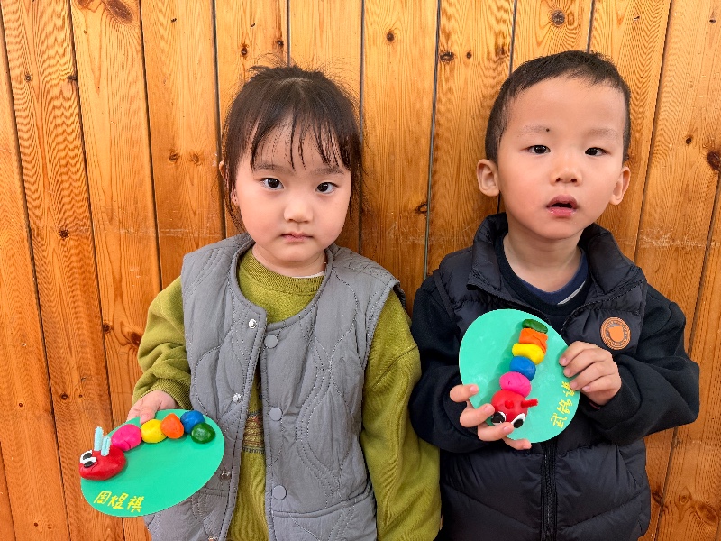 快来欣赏小朋友们做的毛毛虫叭!