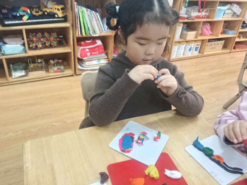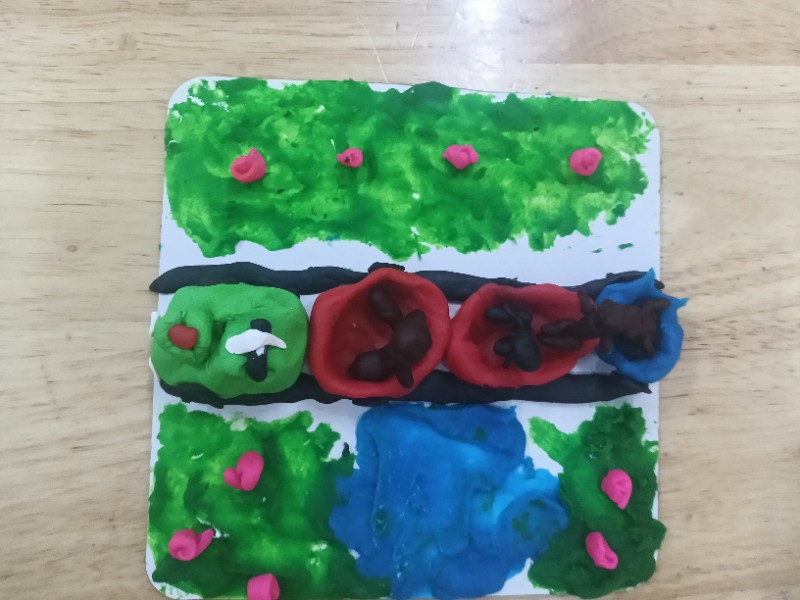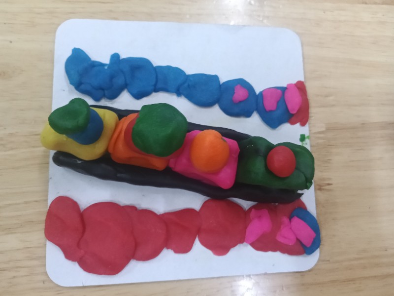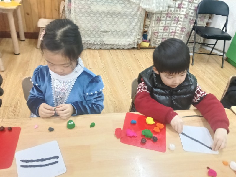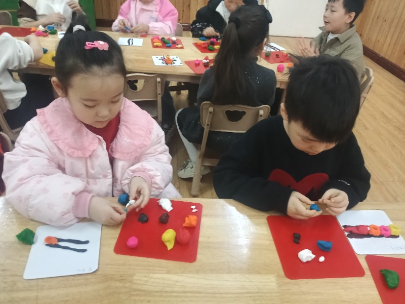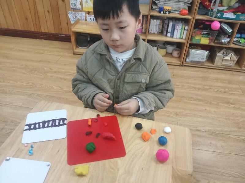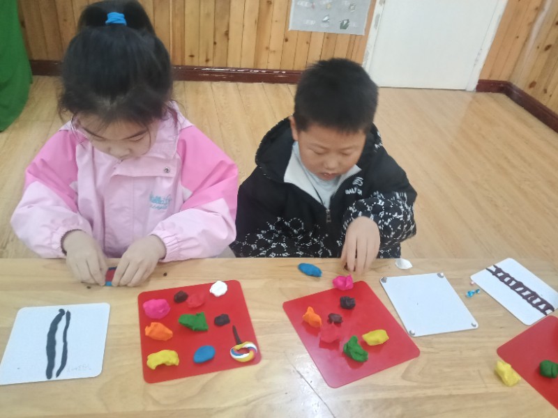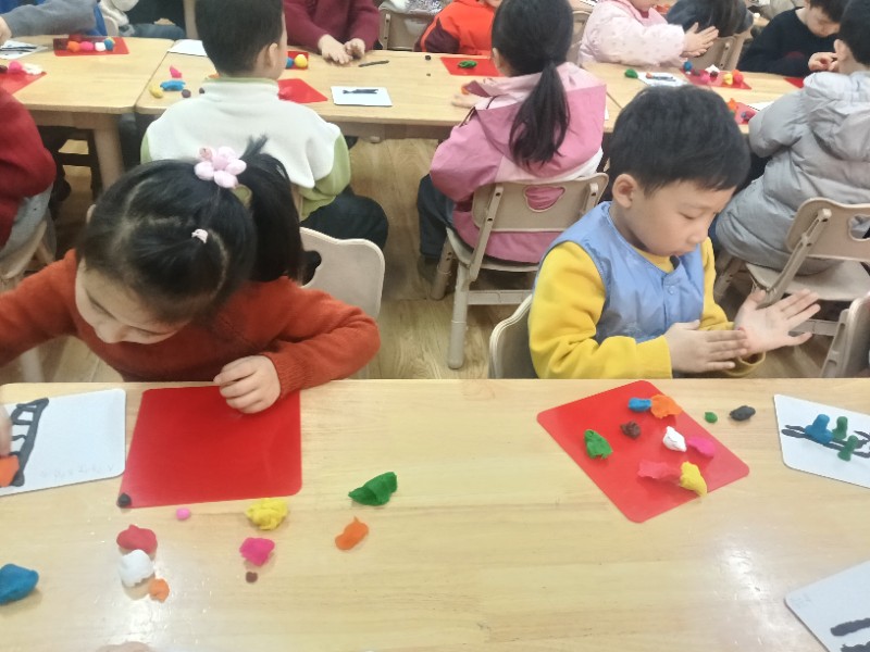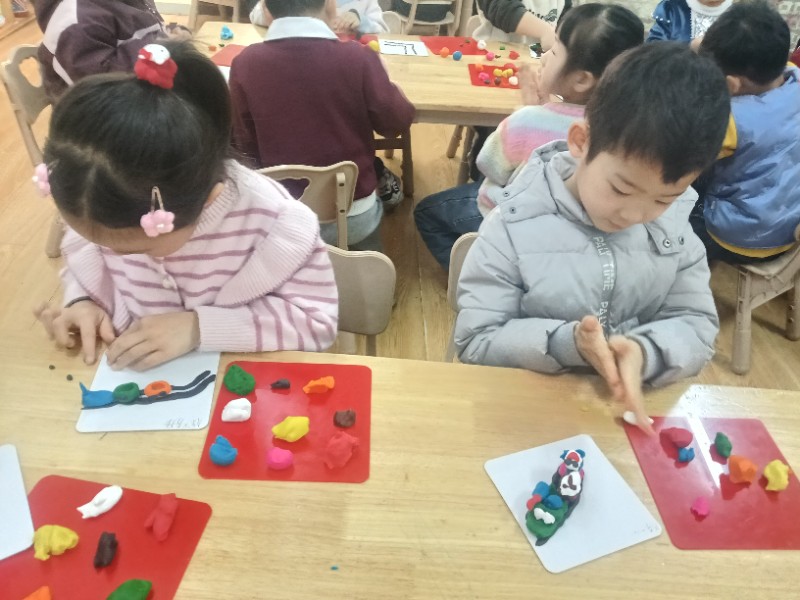 今天的面塑课上孩子们脑洞大开,他们做出的小火车形式各异且惟妙惟肖,一辆辆小火车在各自的轨道上忙碌着……(面塑即培养创新能力又锻炼手眼协调能力)