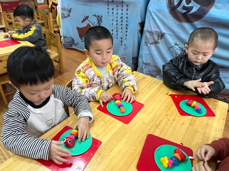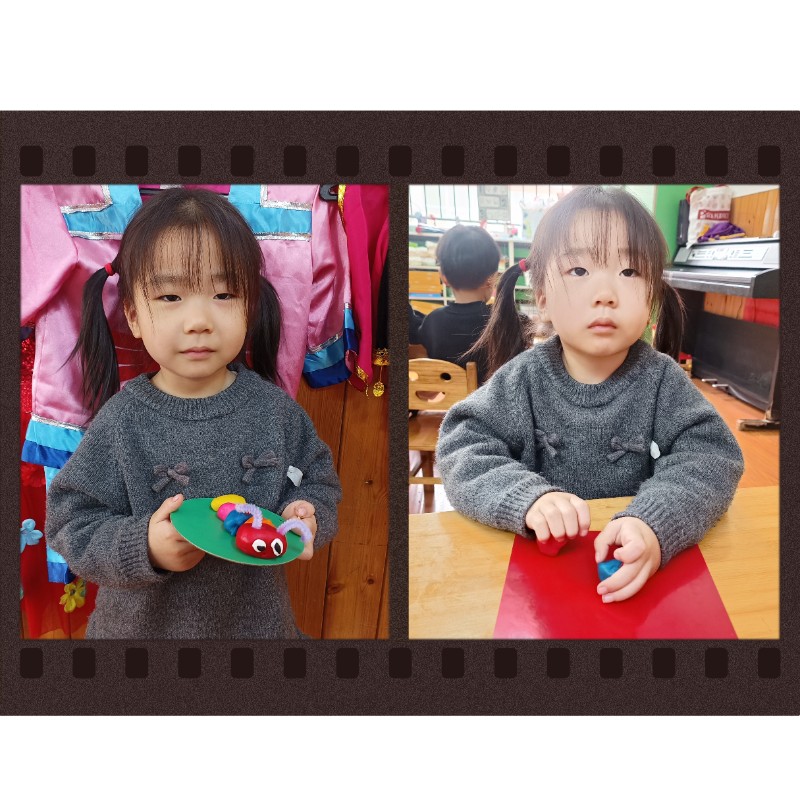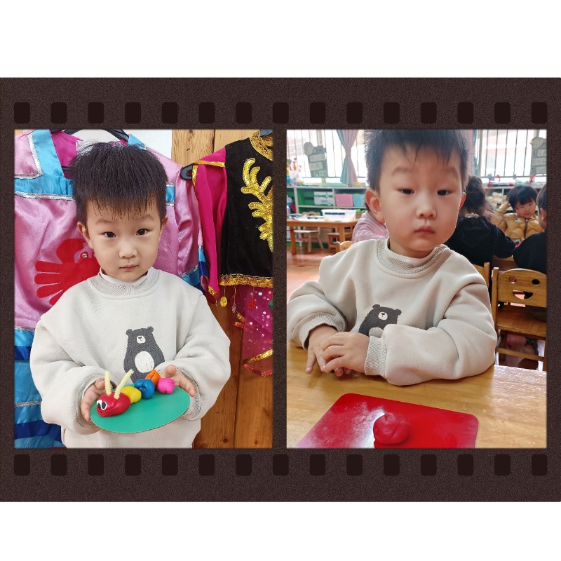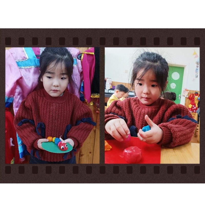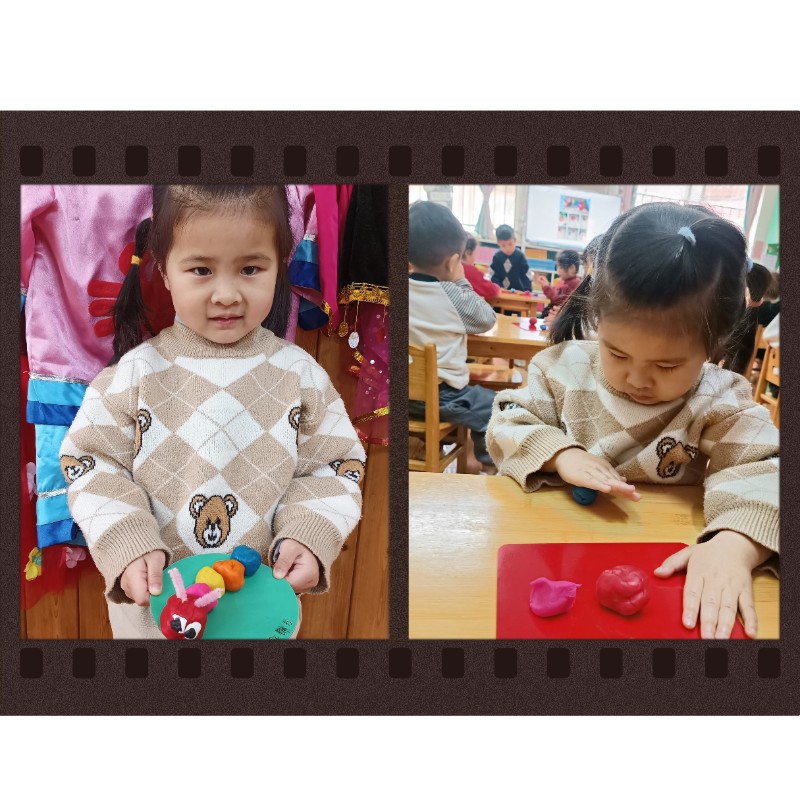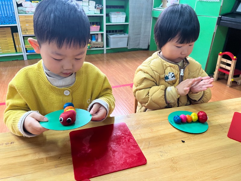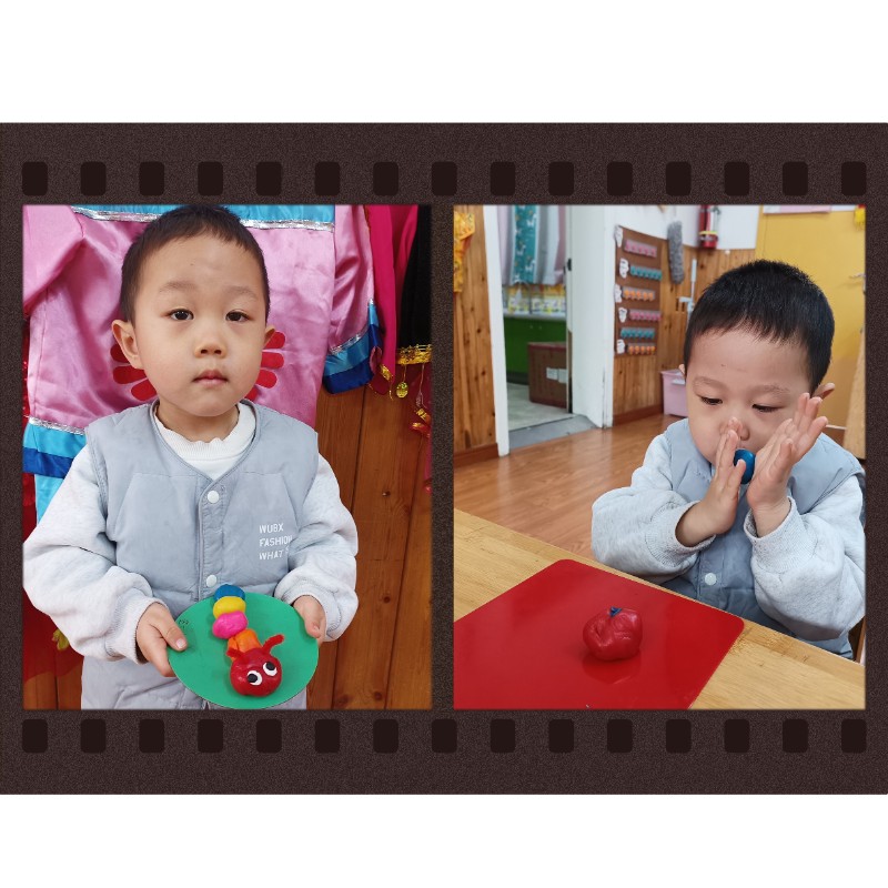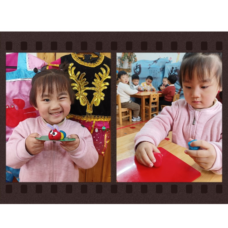 通过揉、搓、捏、压,锻炼了小手精细动作和想象力。每一只毛毛虫都是宝贝独一无二的作品,回家后请多多鼓励、欣赏孩子的创作哦~