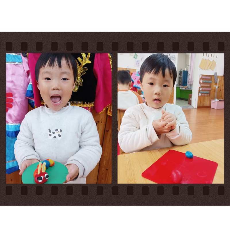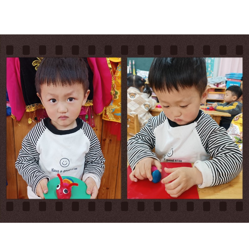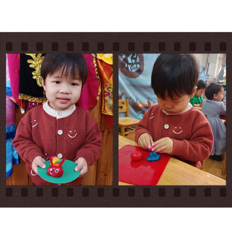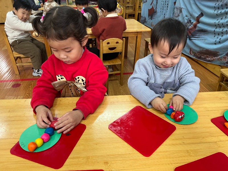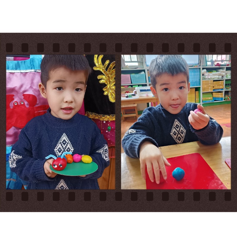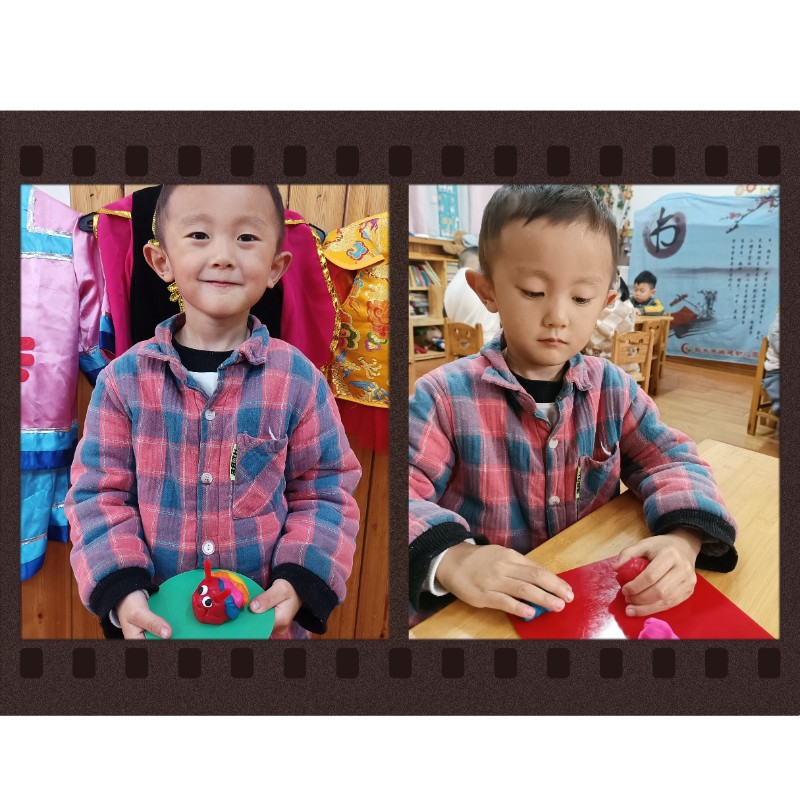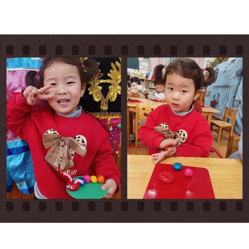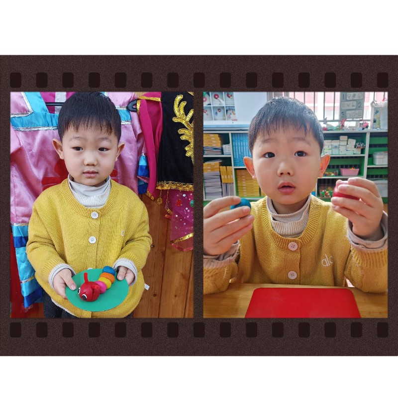 通过揉、搓、捏、压,锻炼了小手精细动作和想象力。每一只毛毛虫都是宝贝独一无二的作品,回家后请多多鼓励、欣赏孩子的创作哦~