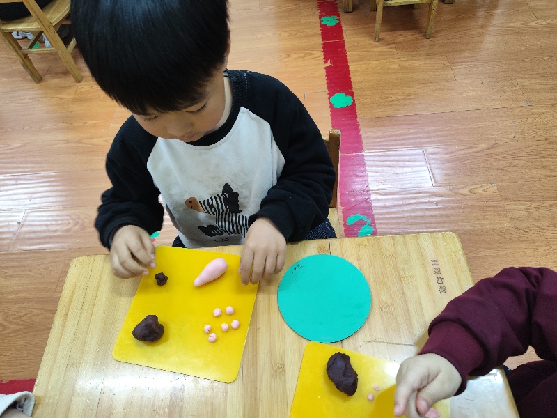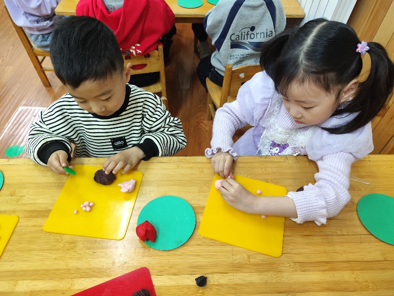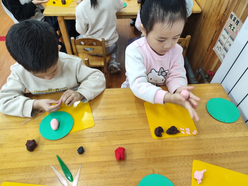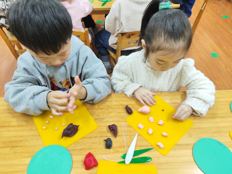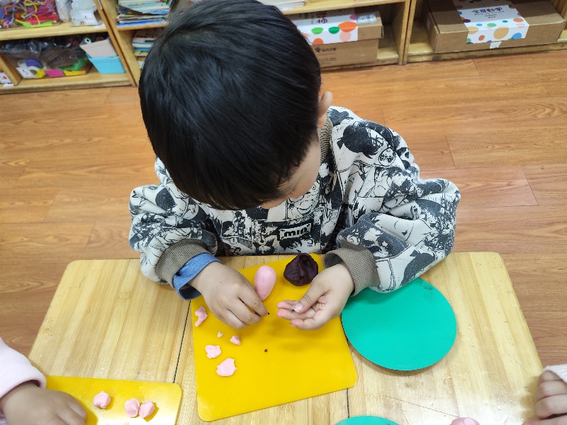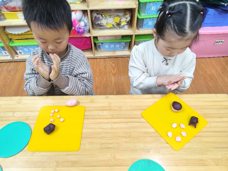 小刺猬🦔 圆滚滚,满身尖刺像钢针。小朋友用面泥捏出小刺猬背果子🍎的可爱模样,色彩斑斓真有趣🎉